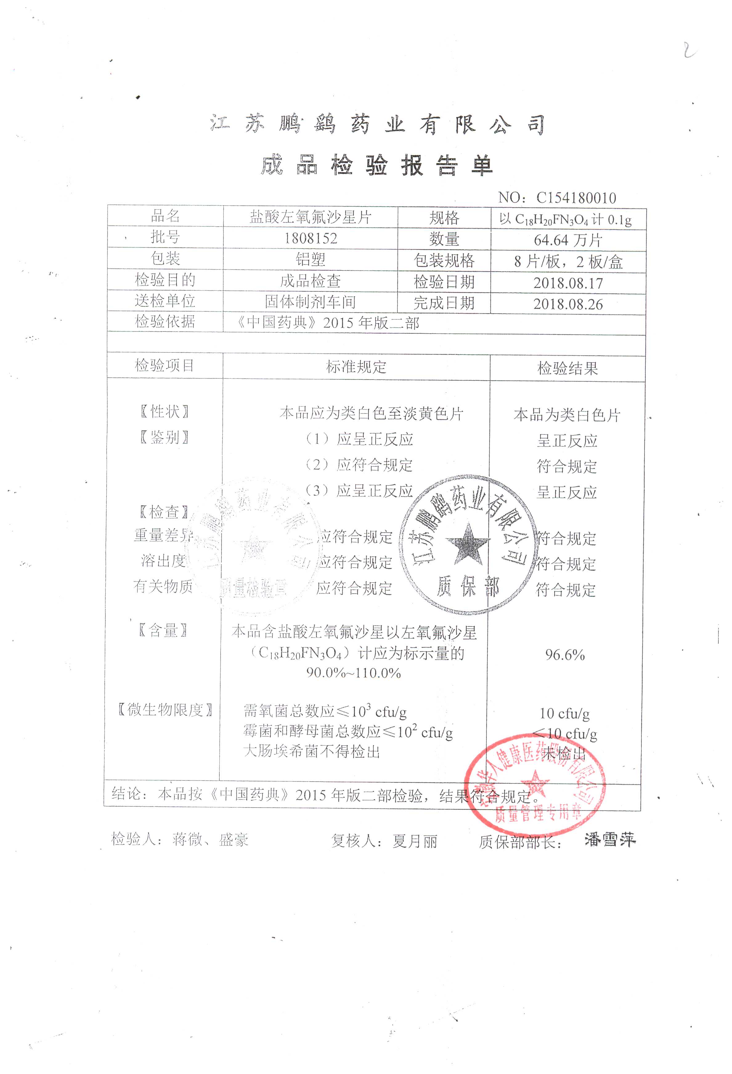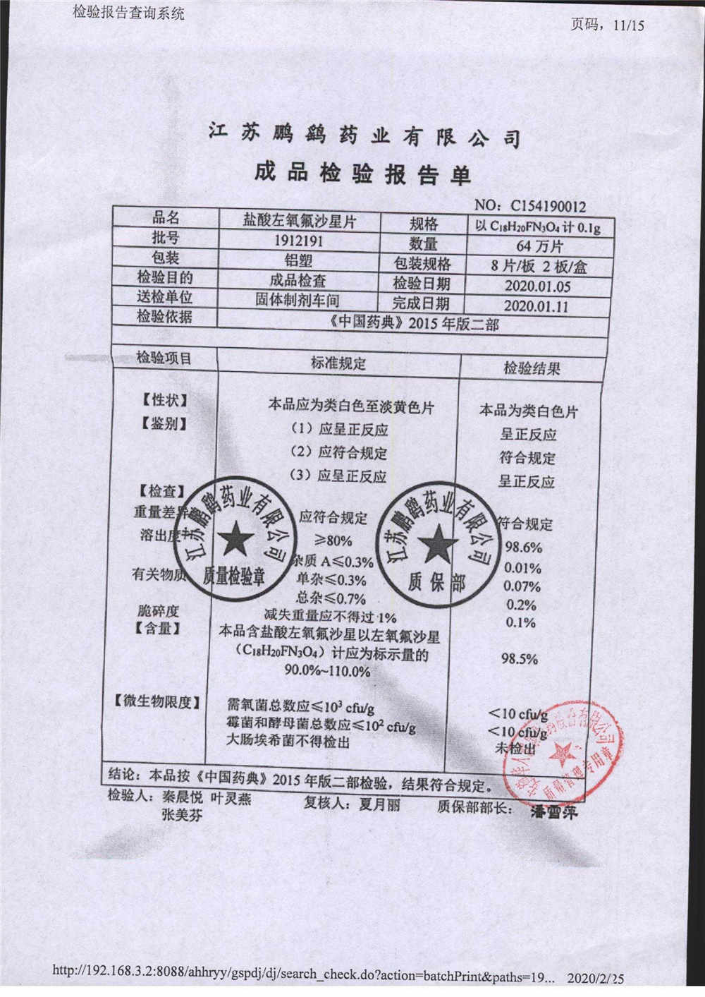 | 鹽酸左氧氟沙星片 | 16s | 1905052 | 查看詳情 |