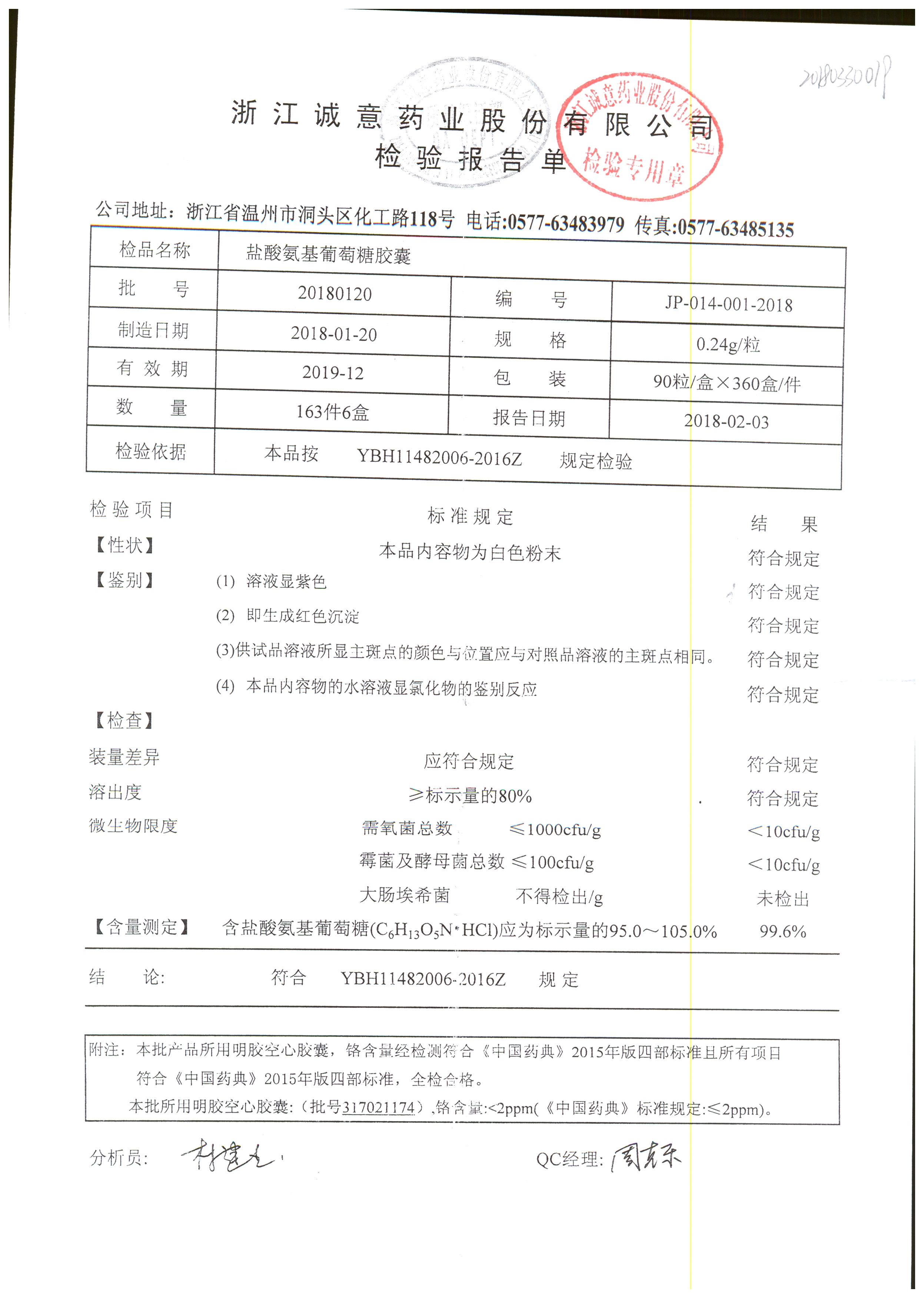 | 鹽酸氨基葡萄糖膠囊 | 0.24g*90s | 20180120 | 查看詳情 |
