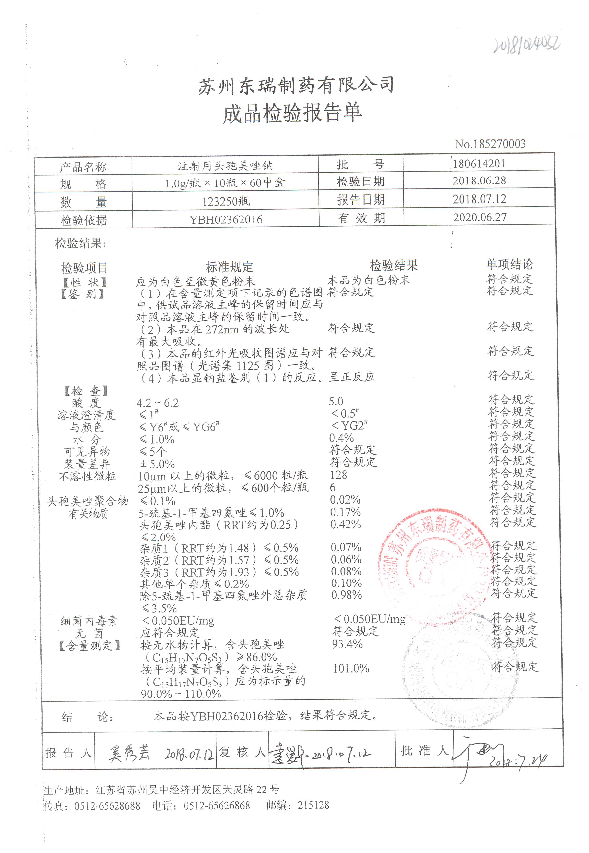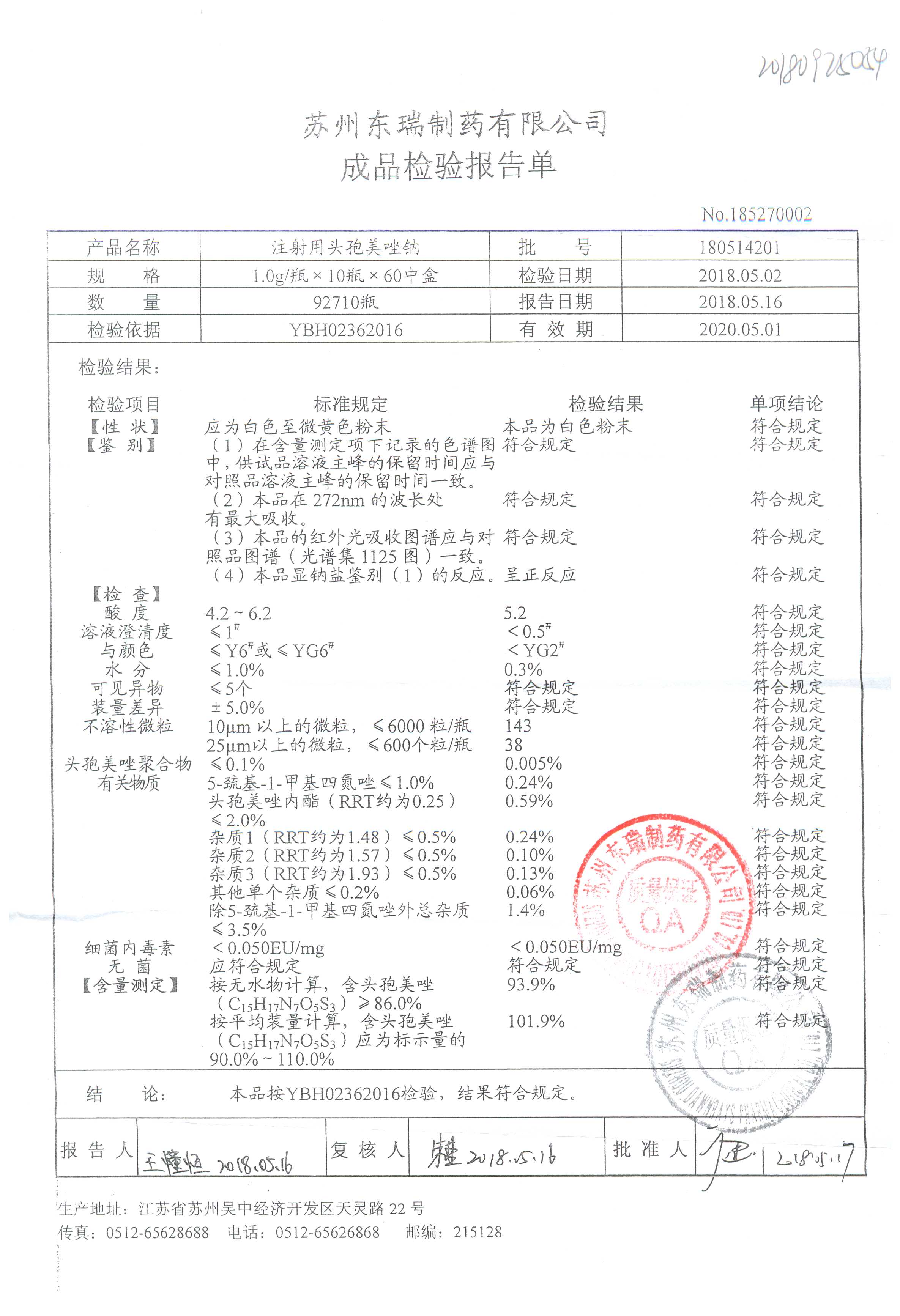 名稱 規格 批號 藥檢報告