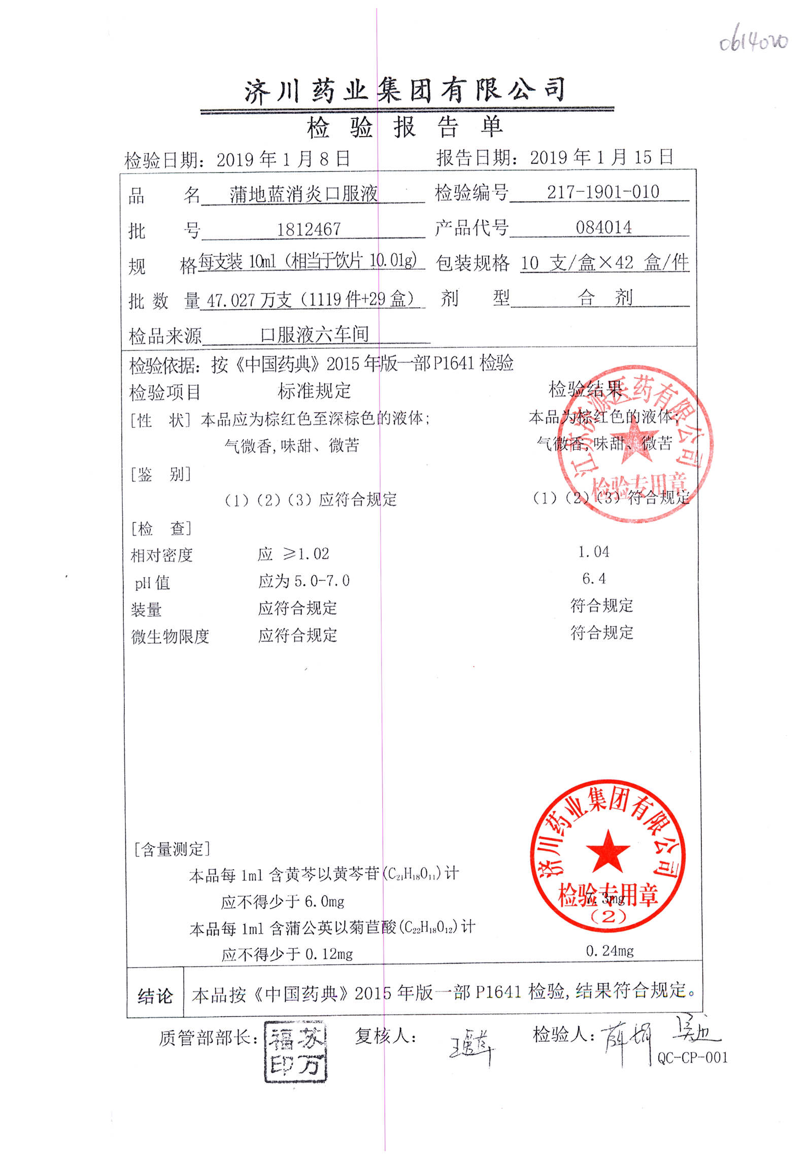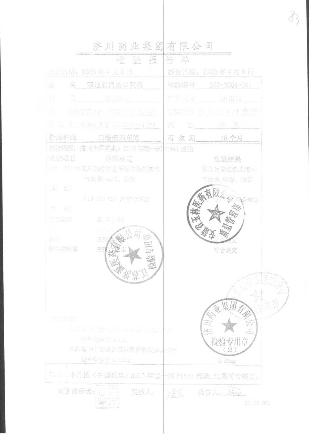 | 名稱 | 規(guī)格 | 批號(hào) | 藥檢報(bào)告 |