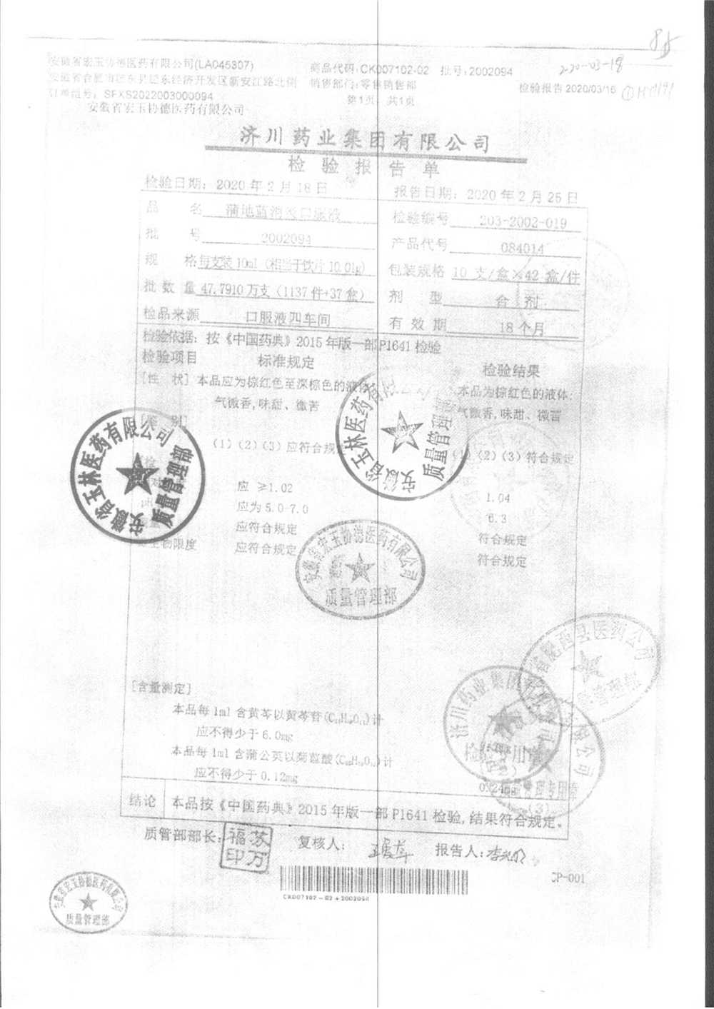 | 蒲地藍(lán)消炎口服液 | 10ml*10支 | 2010224 | 查看詳情 |