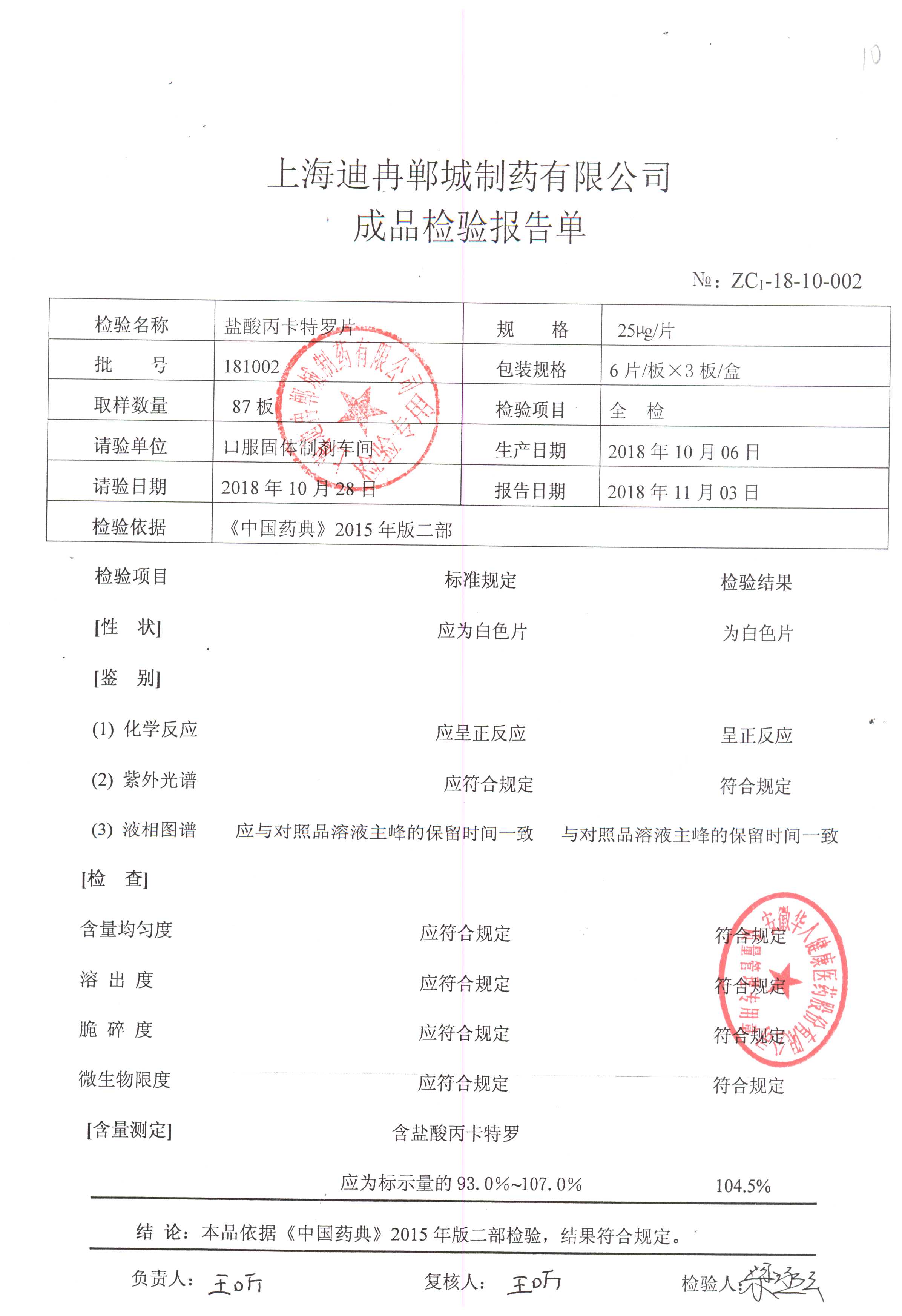 | 鹽酸丙卡特羅片 | 25ug*18s | 180101 | 查看詳情 |