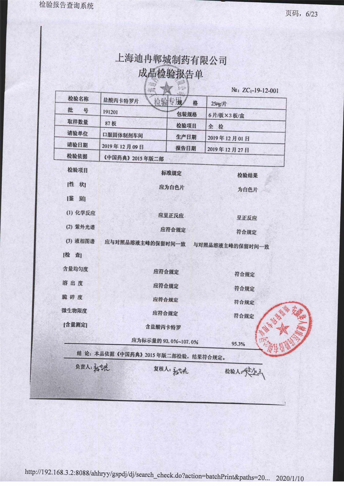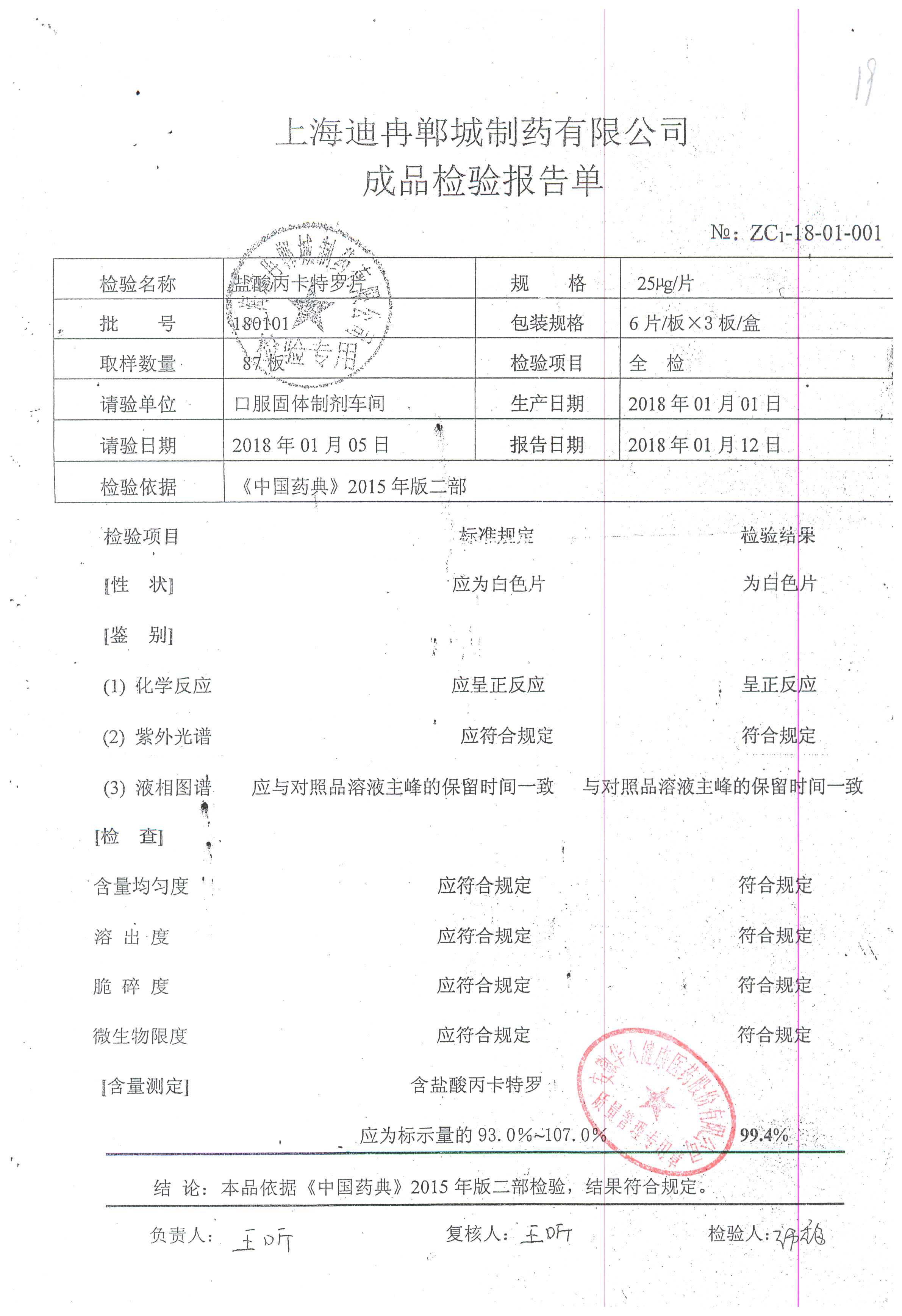 | 鹽酸丙卡特羅片 | 25ug*18s | 191201 | 查看詳情 |
