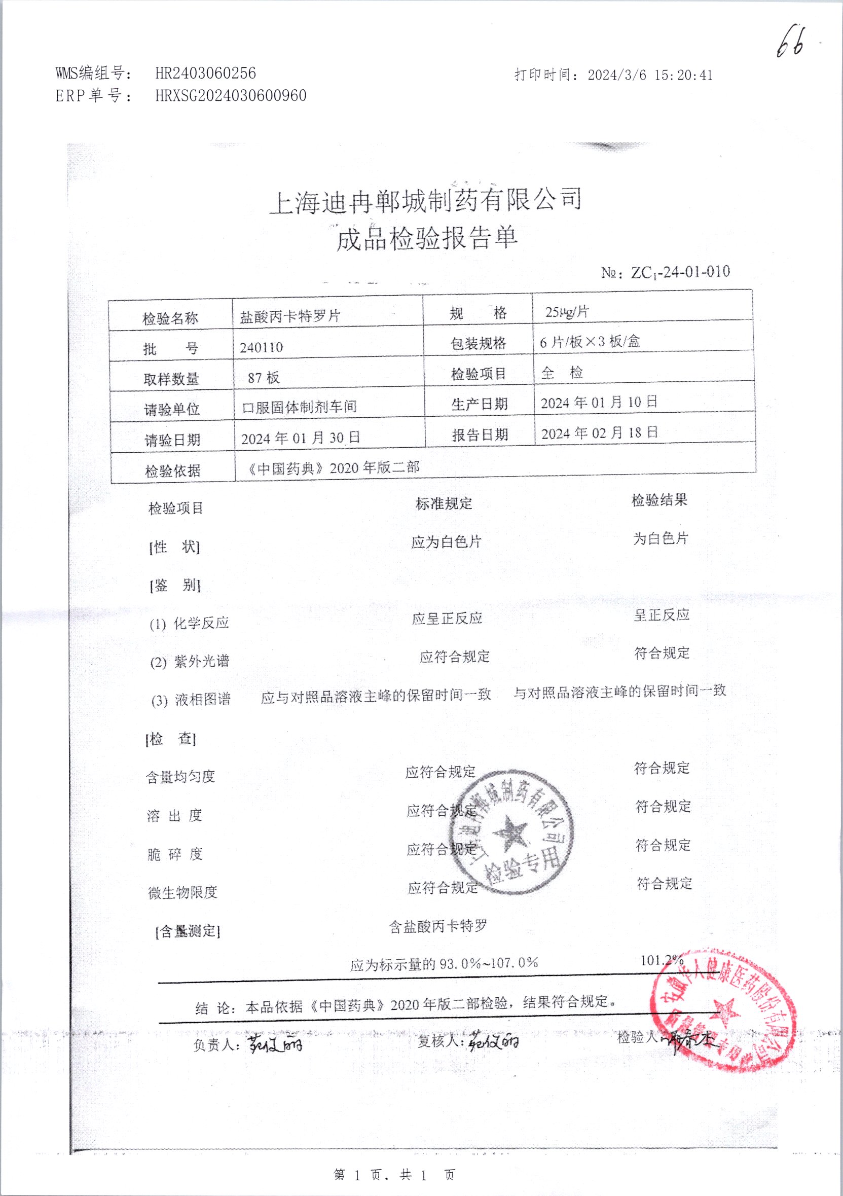 | 鹽酸丙卡特羅片 | 25ug*18s | 240110 | 查看詳情 |