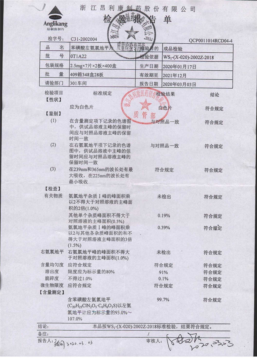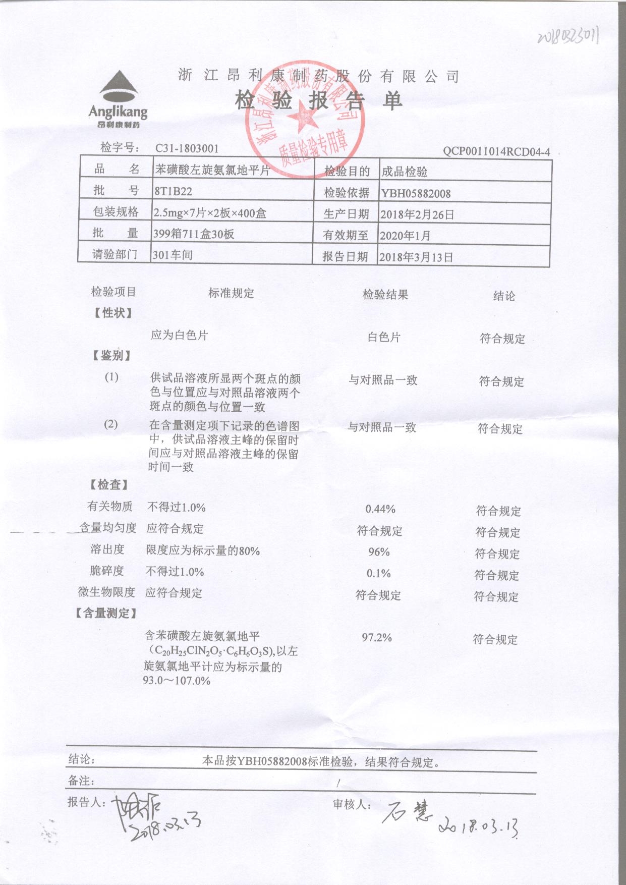 苯磺酸左旋氨氯地平片 2.5mg*7s OT1A22 查看詳情