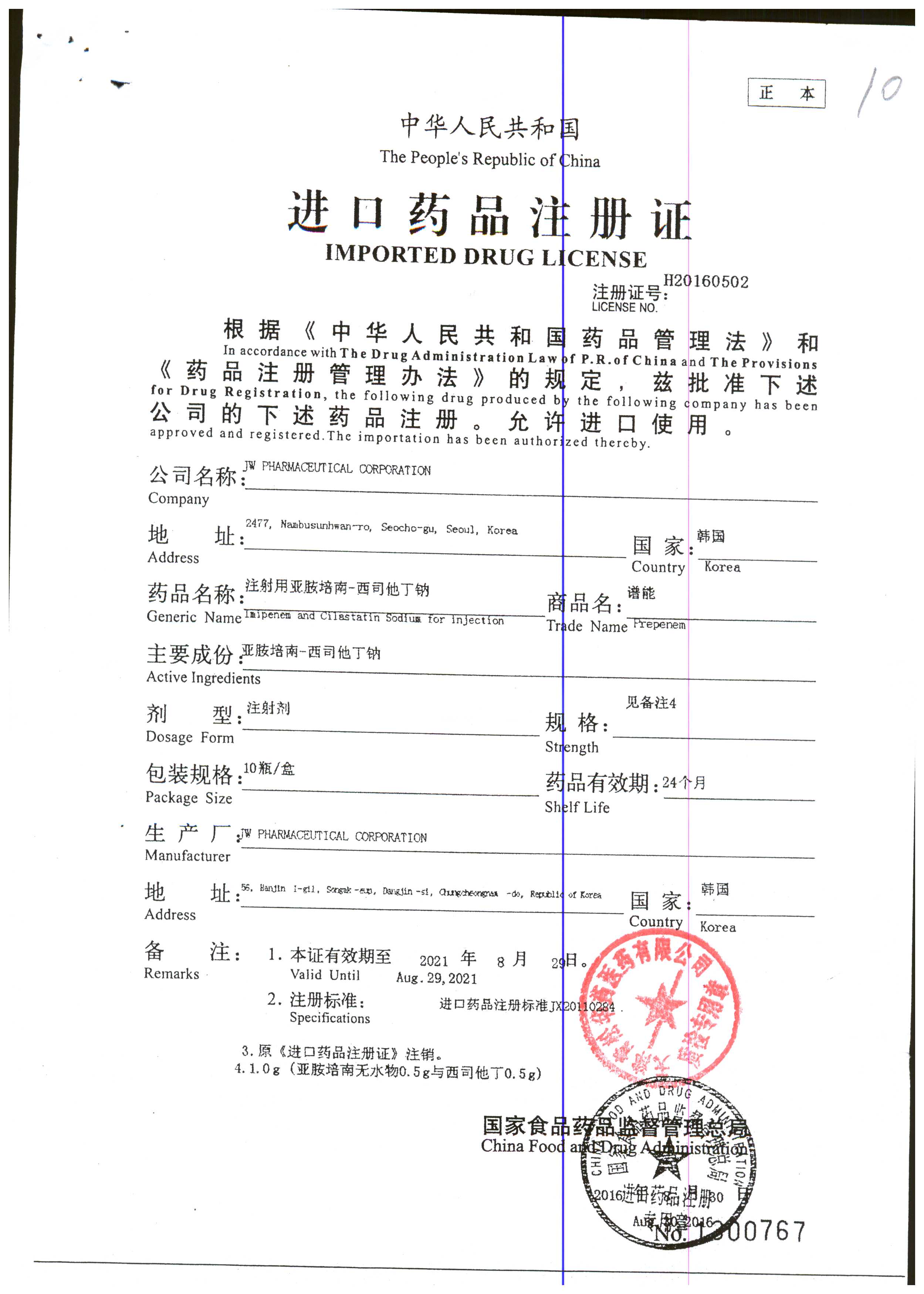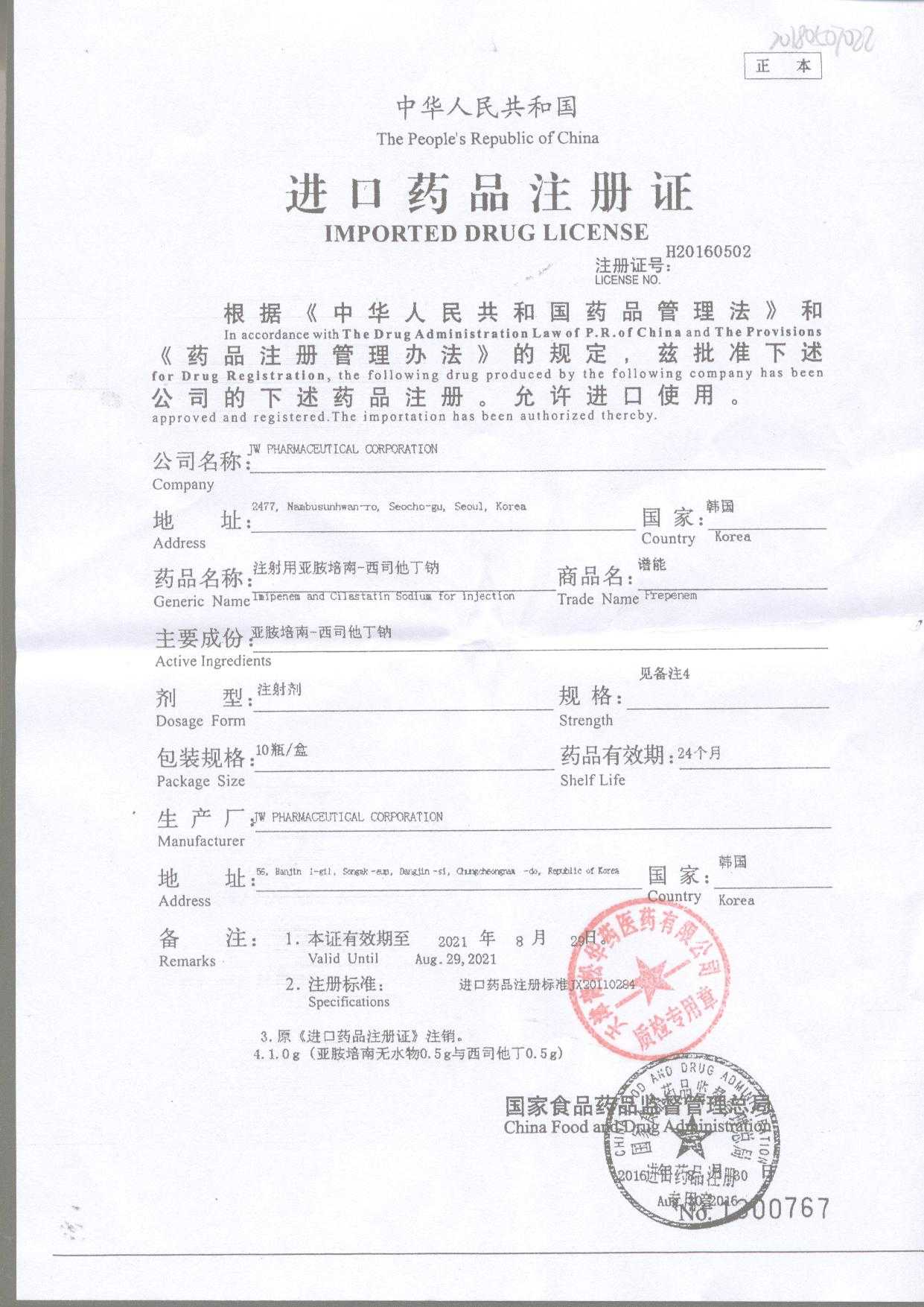 | 注射用亞胺培南-西司他丁鈉 | 1g*10瓶 | 17025(3/4) | 查看詳情 |