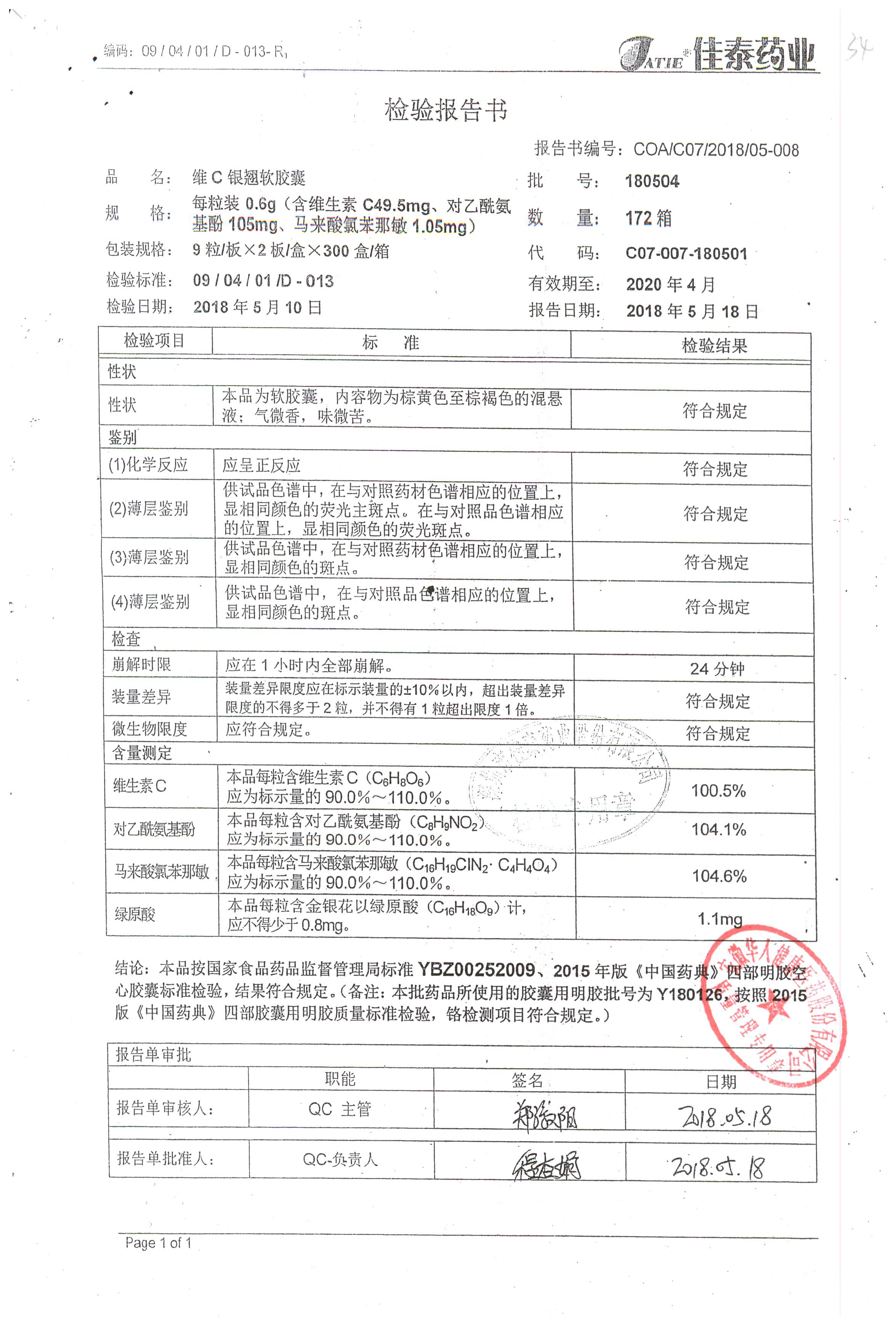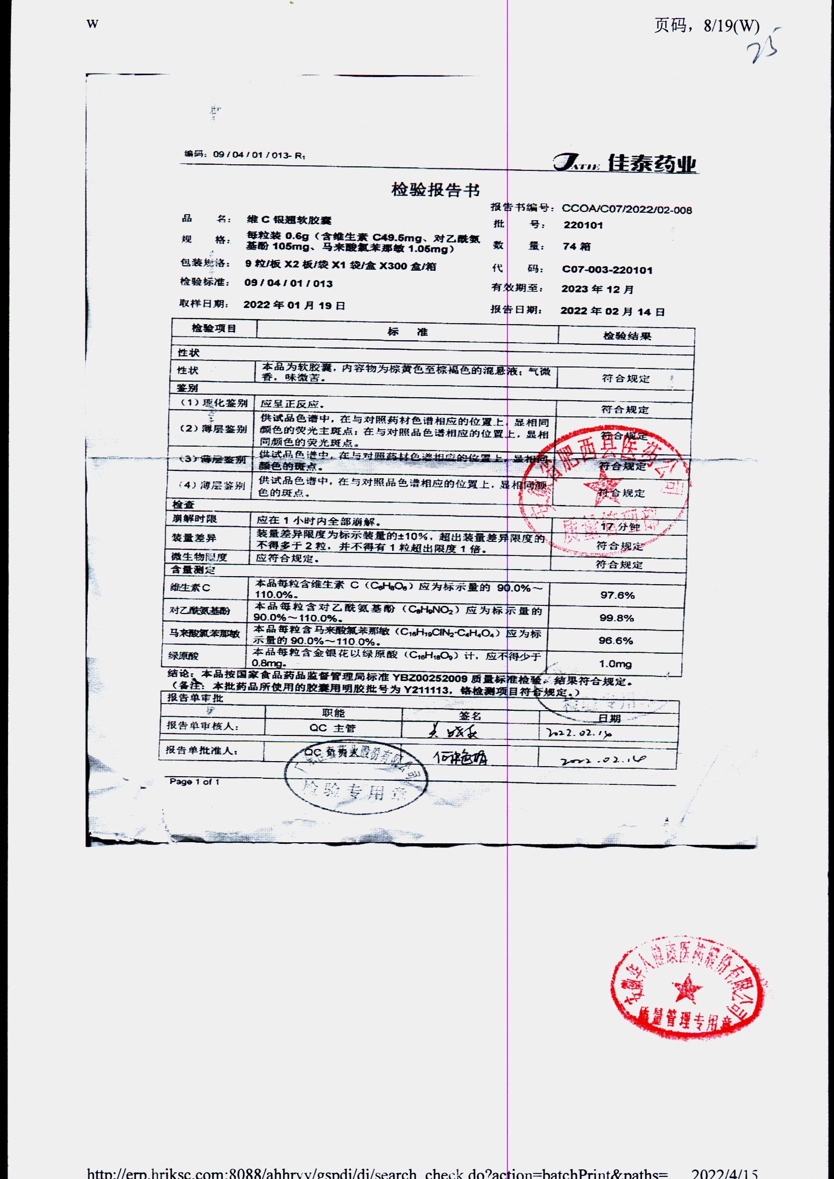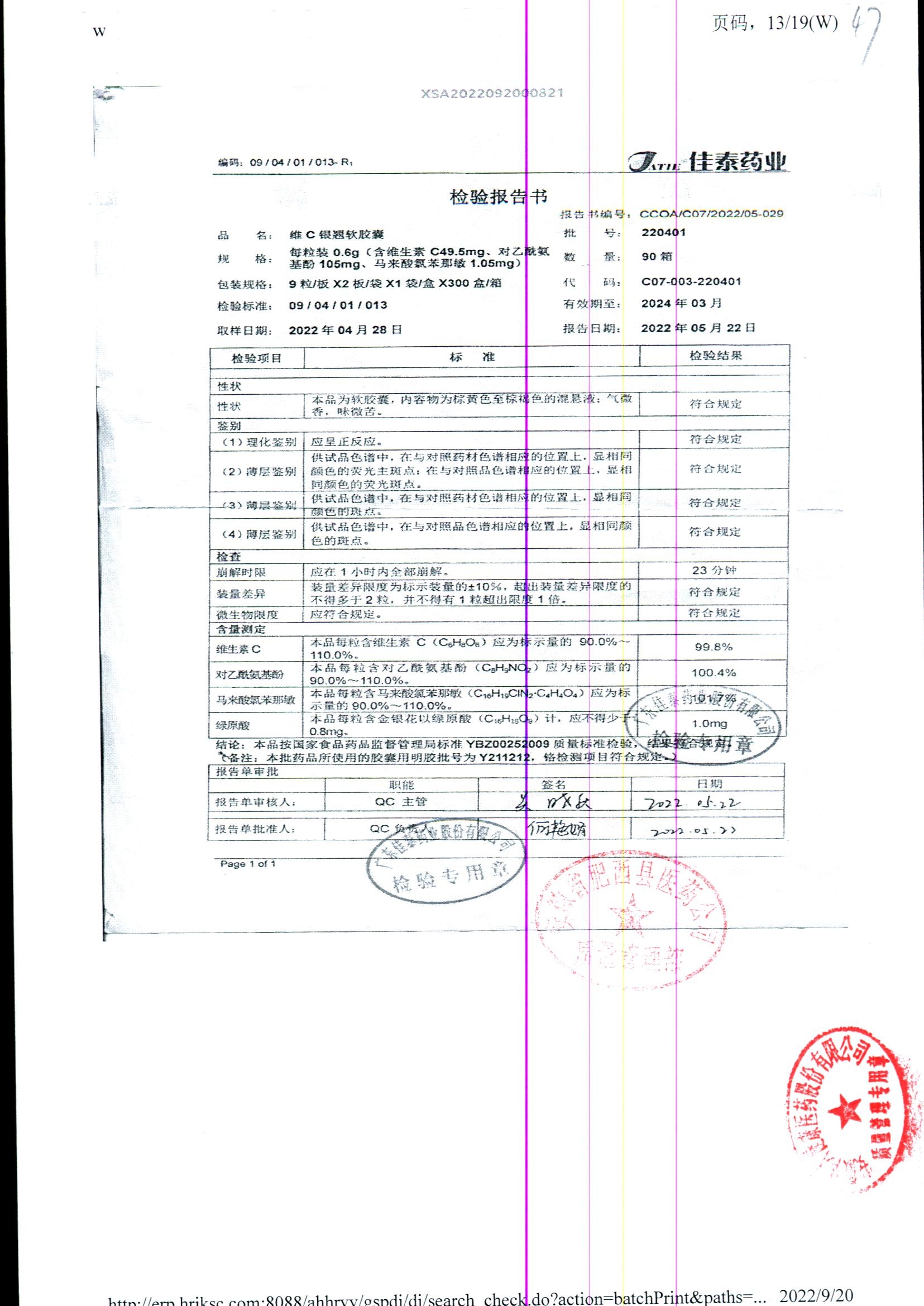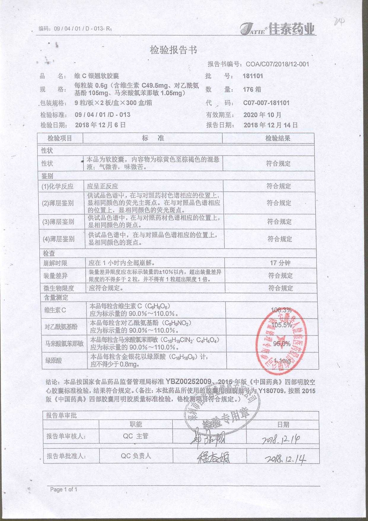 | 名稱 | 規(guī)格 | 批號(hào) | 藥檢報(bào)告 |