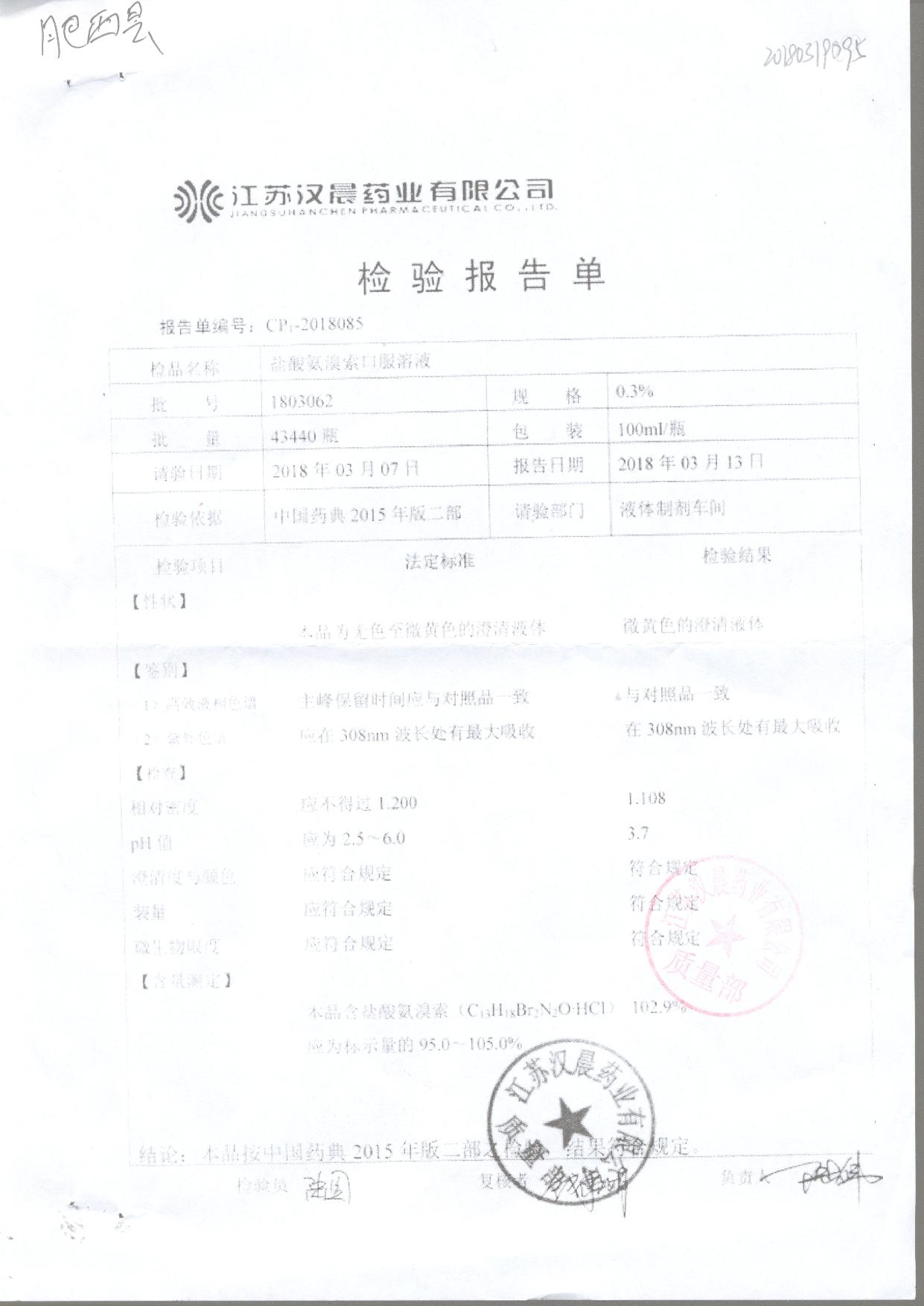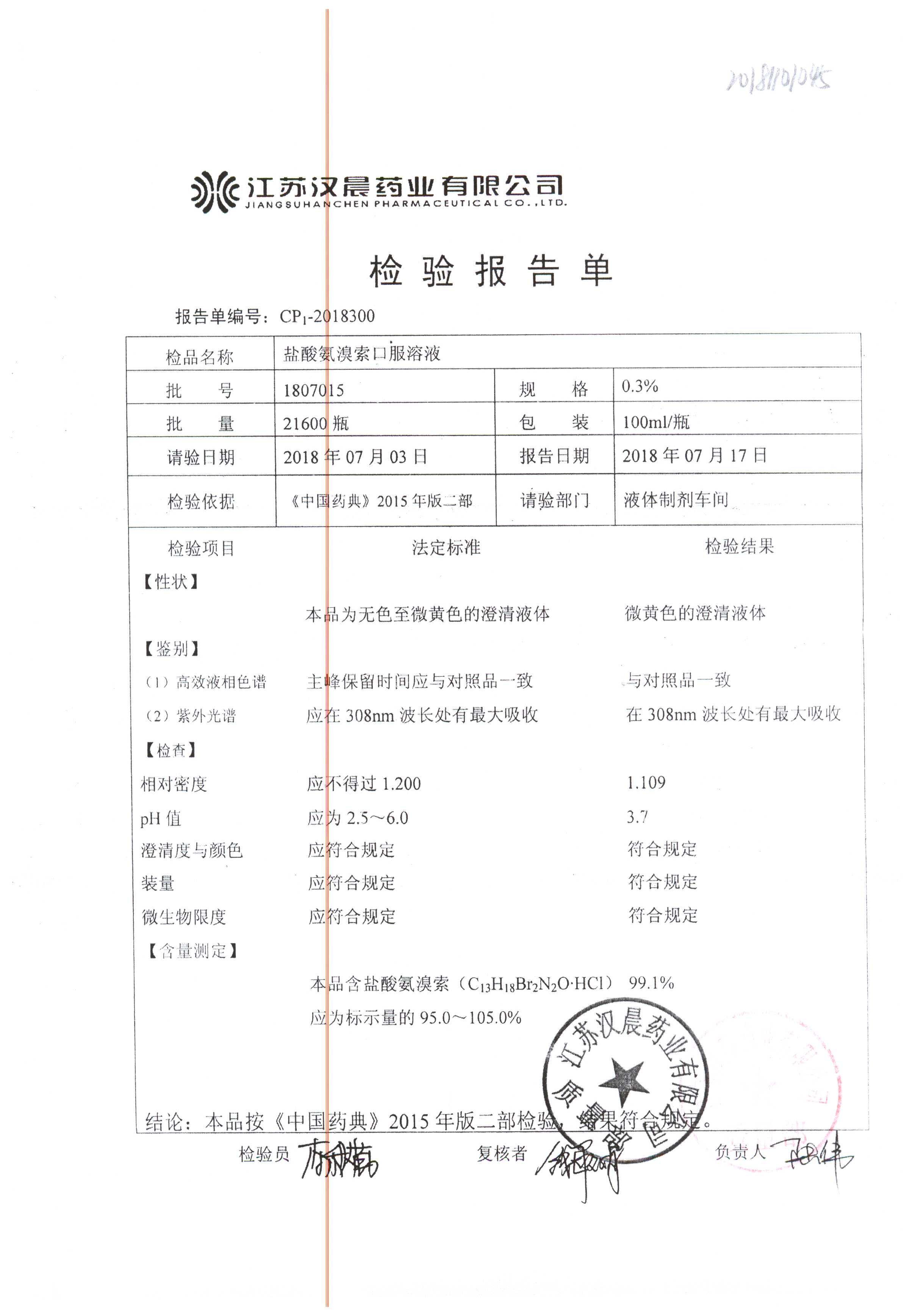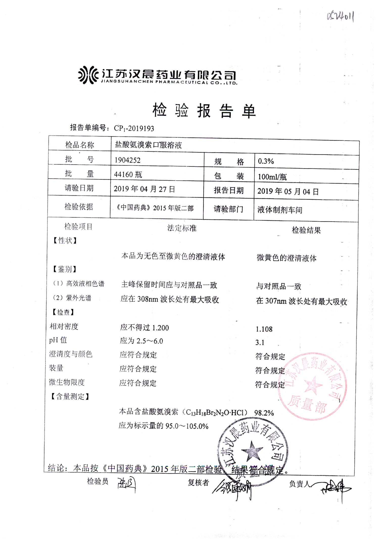 | 鹽酸氨溴索口服溶液 | 100ml | 1801222 | 查看詳情 |