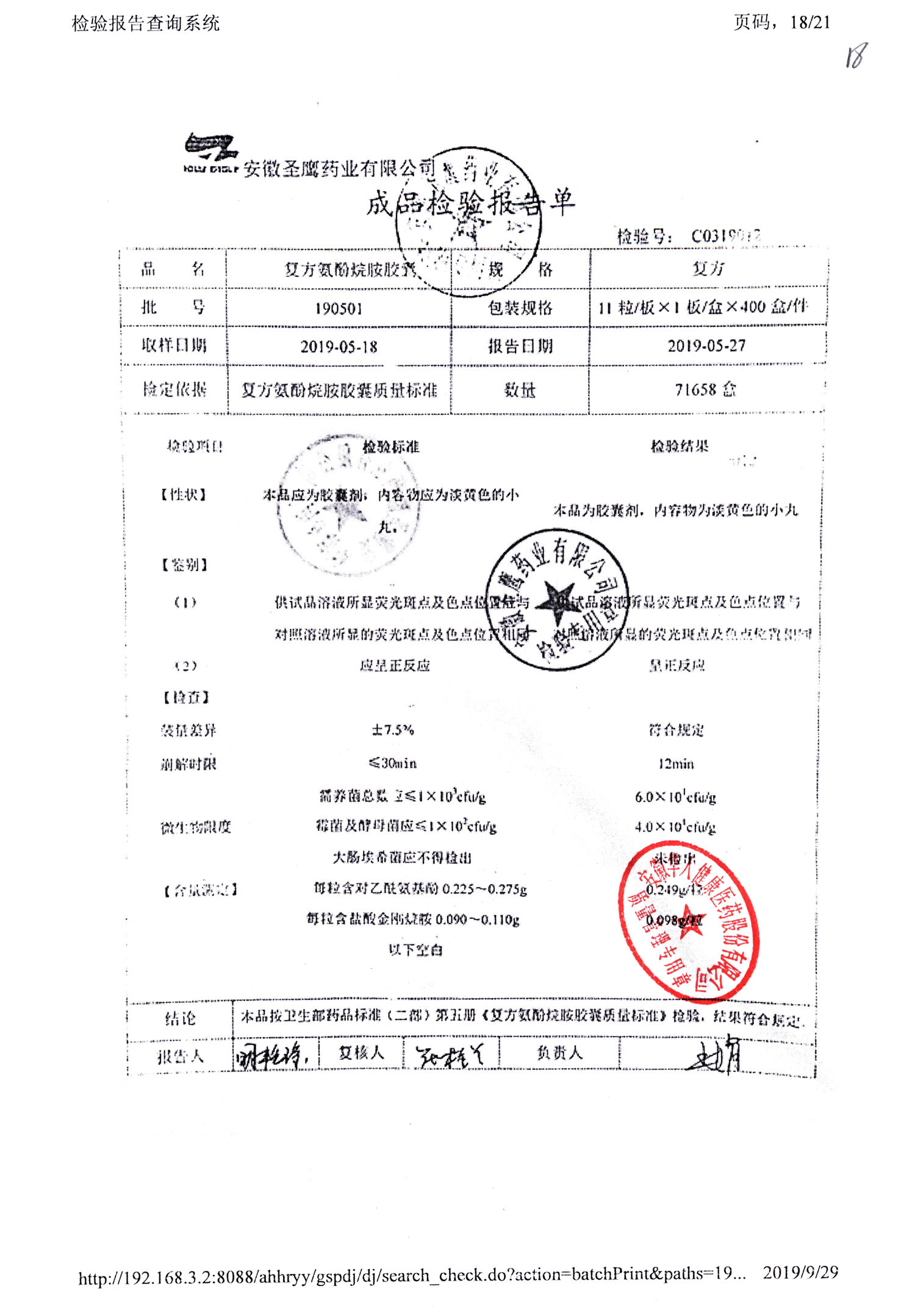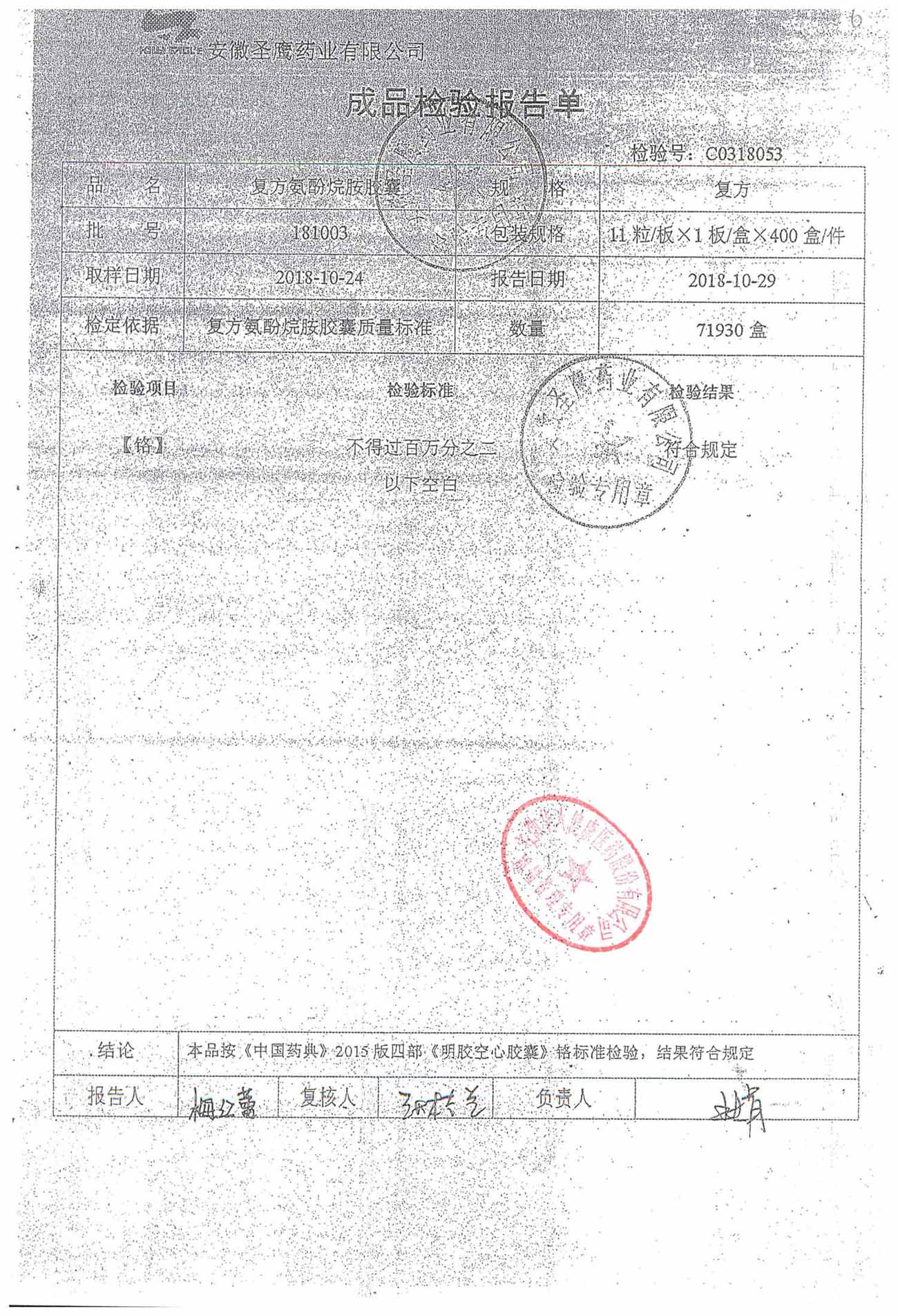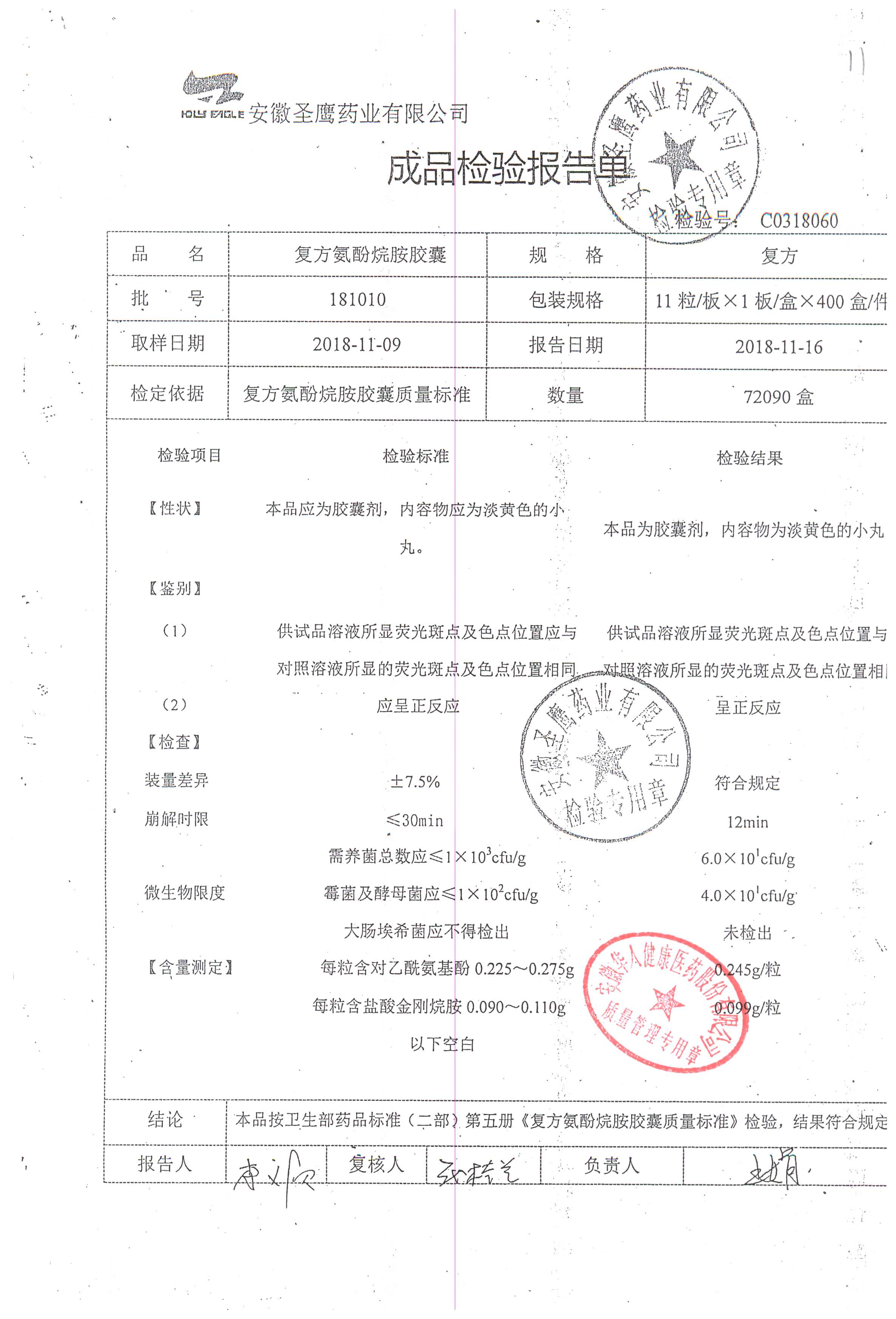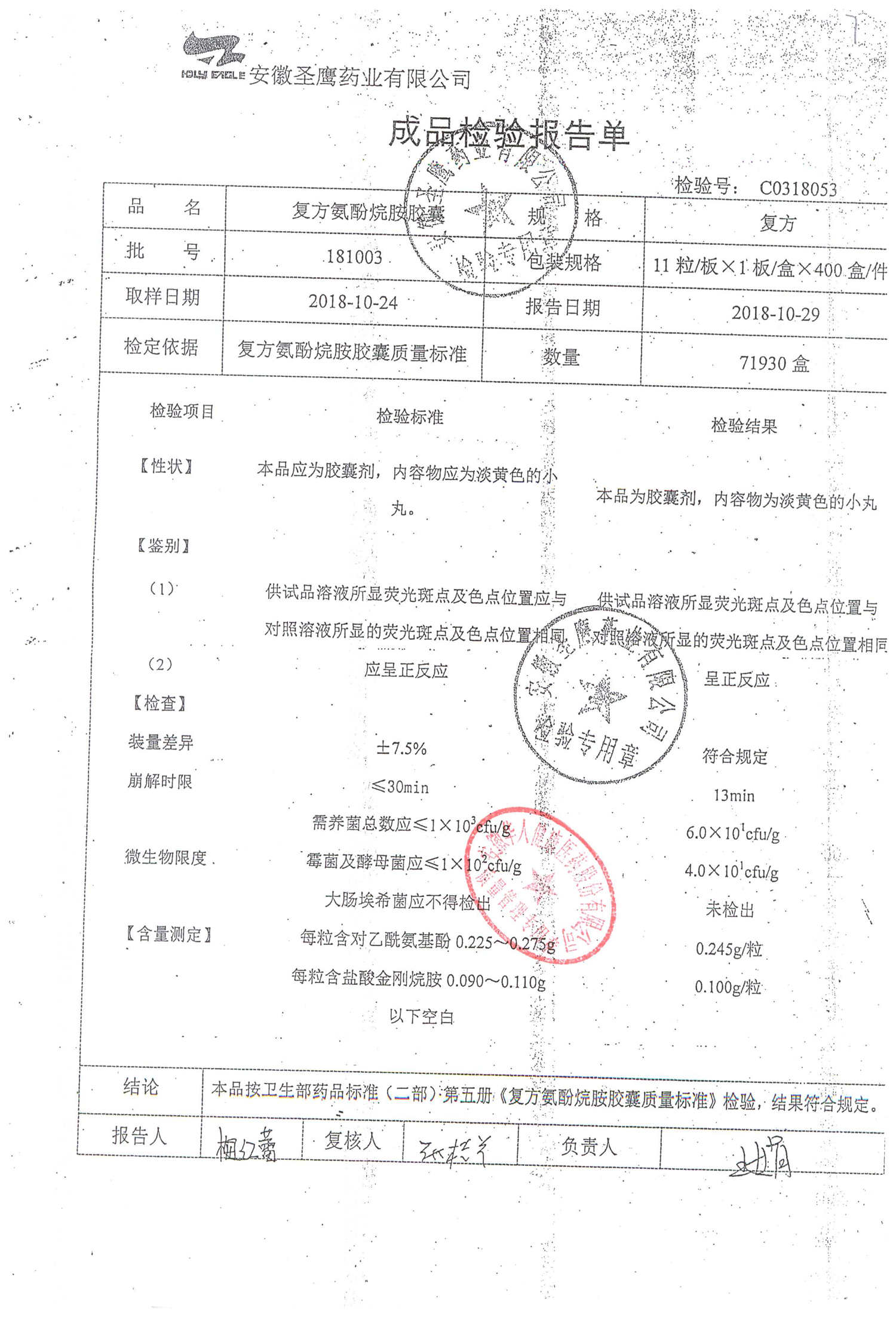 | 復(fù)方氨酚烷胺膠囊 | 11s*1 | 181003(1/2) | 查看詳情 |