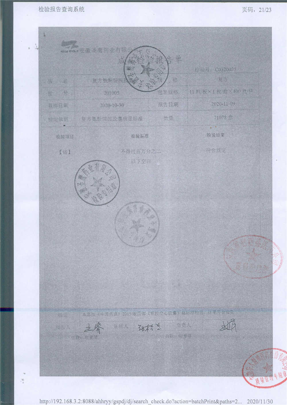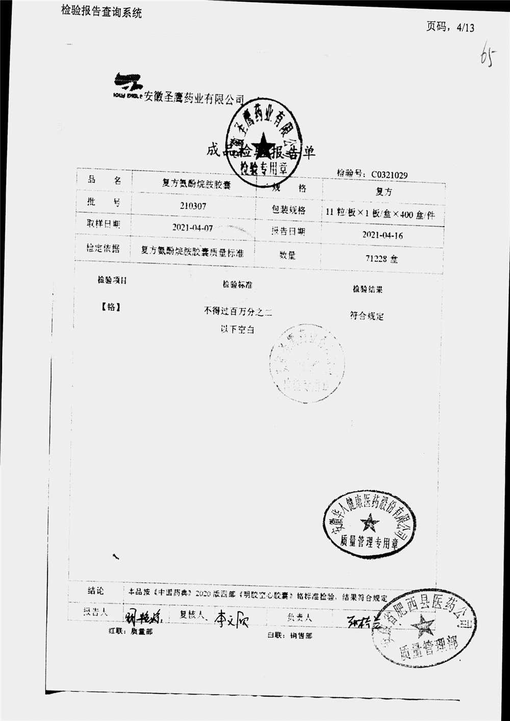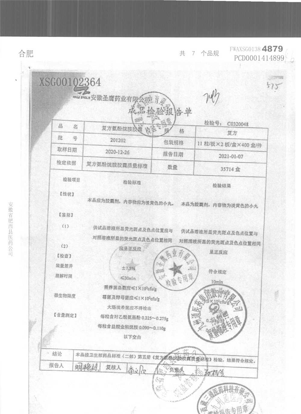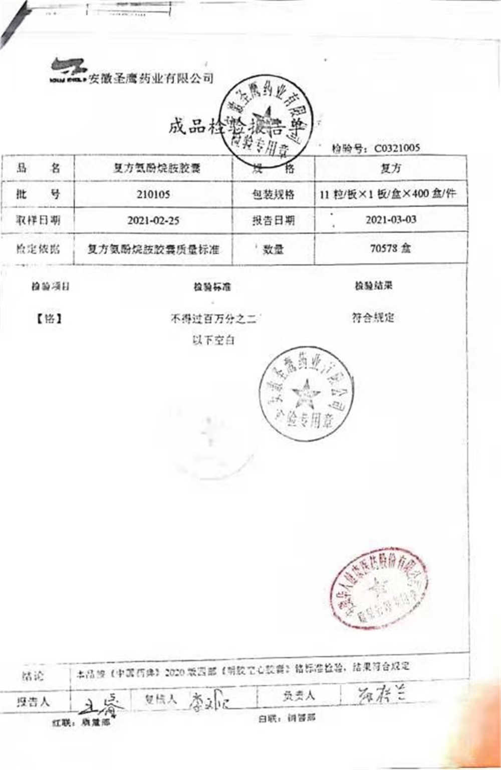 | 復(fù)方氨酚烷胺膠囊 | 11s*1 | 201201(2/2) | 查看詳情 |