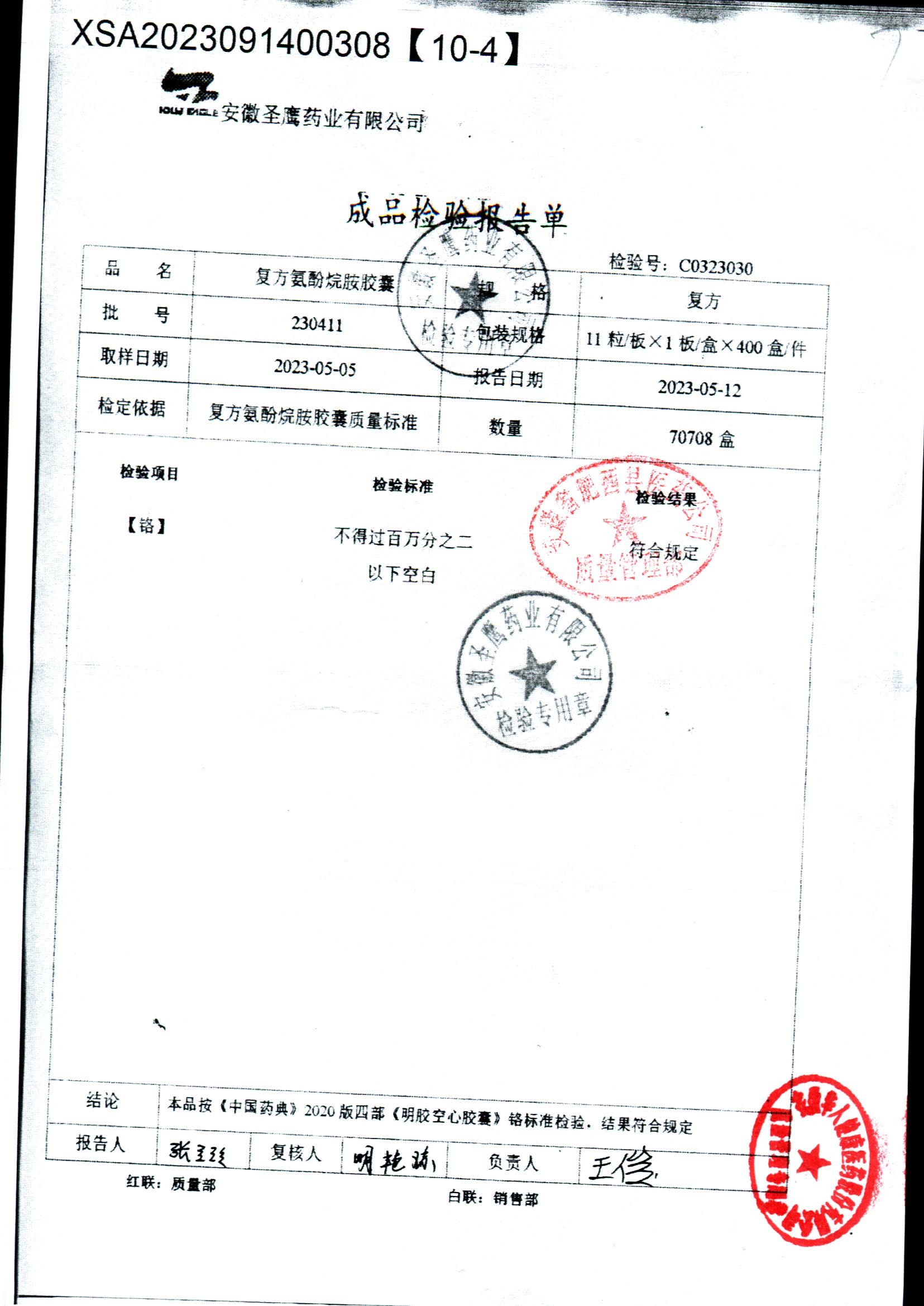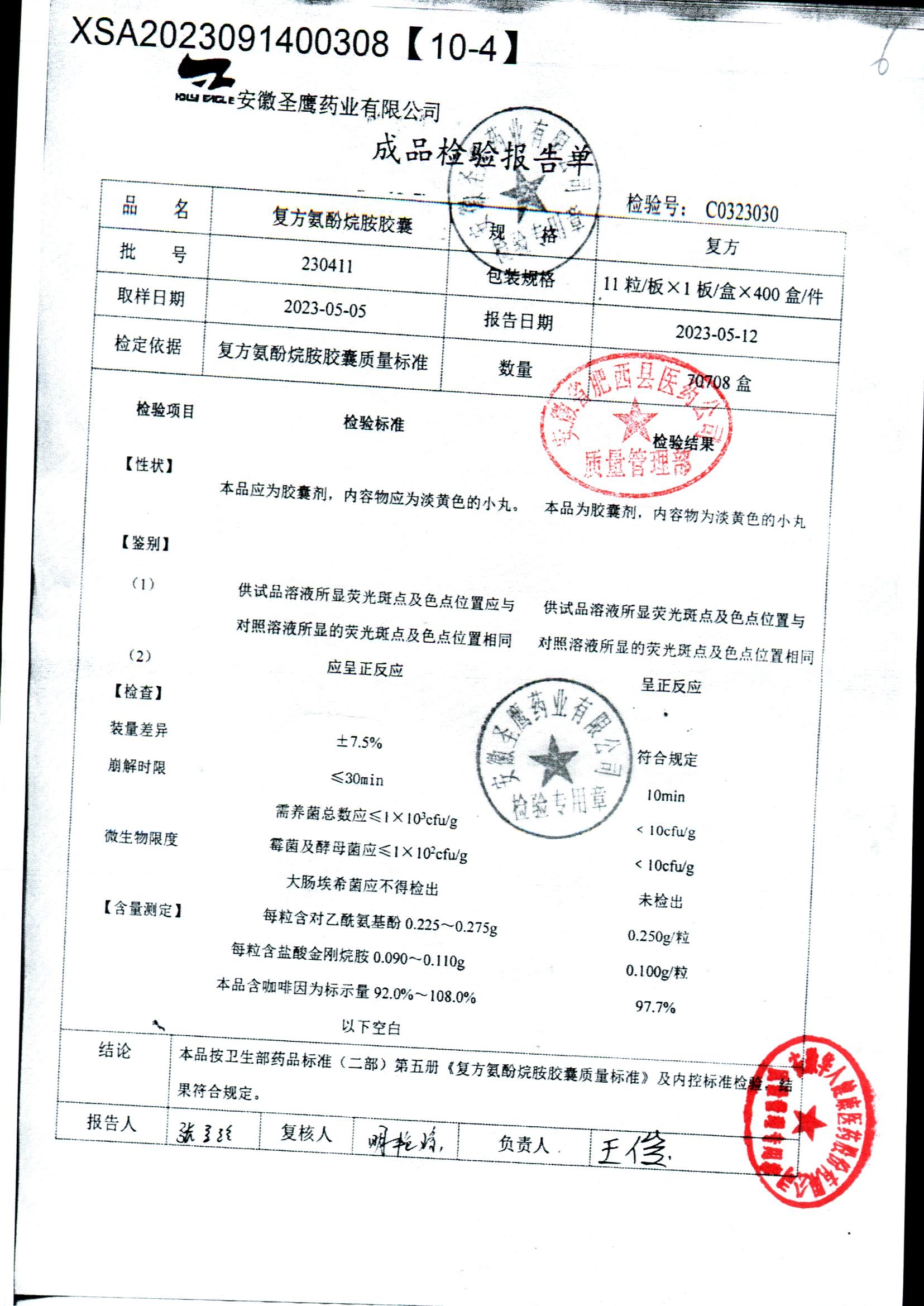 | 復(fù)方氨酚烷胺膠囊 | 11s*1 | 230411/2 | 查看詳情 |