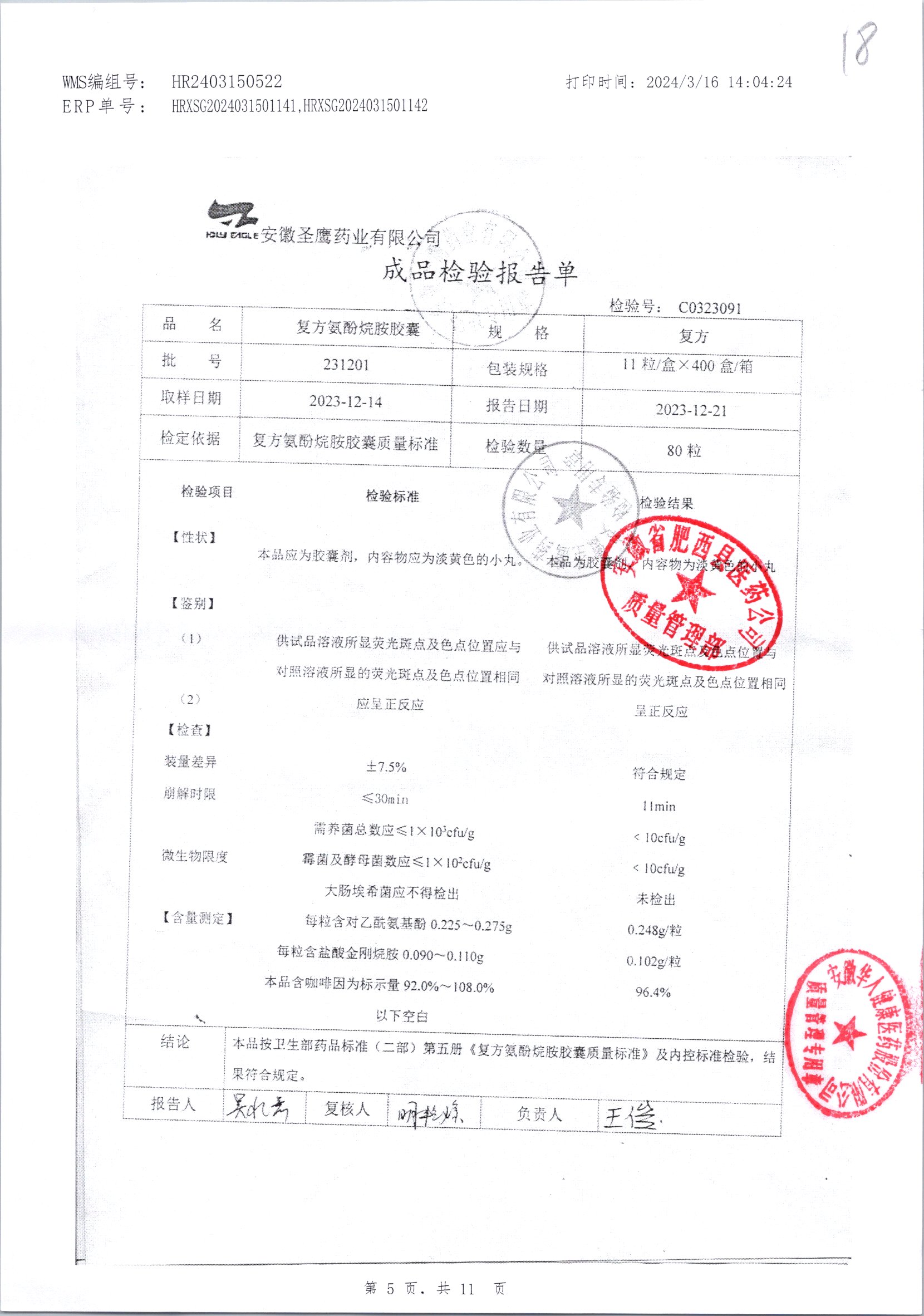| 復(fù)方氨酚烷胺膠囊 | 11s*1 | 231201/2 | 查看詳情 |