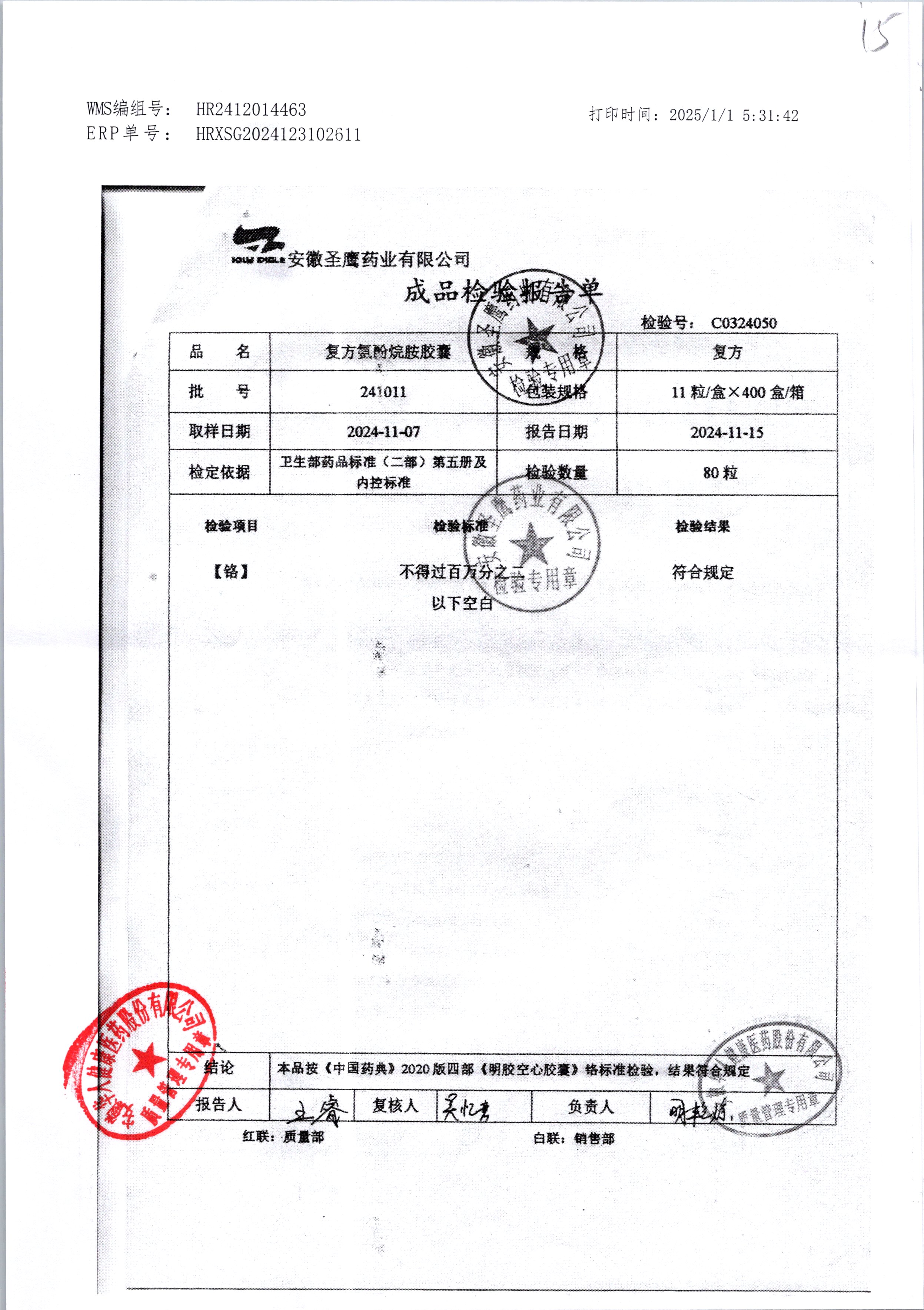 | 復(fù)方氨酚烷胺膠囊 | 11s*1 | 210105(2/2) | 查看詳情 |