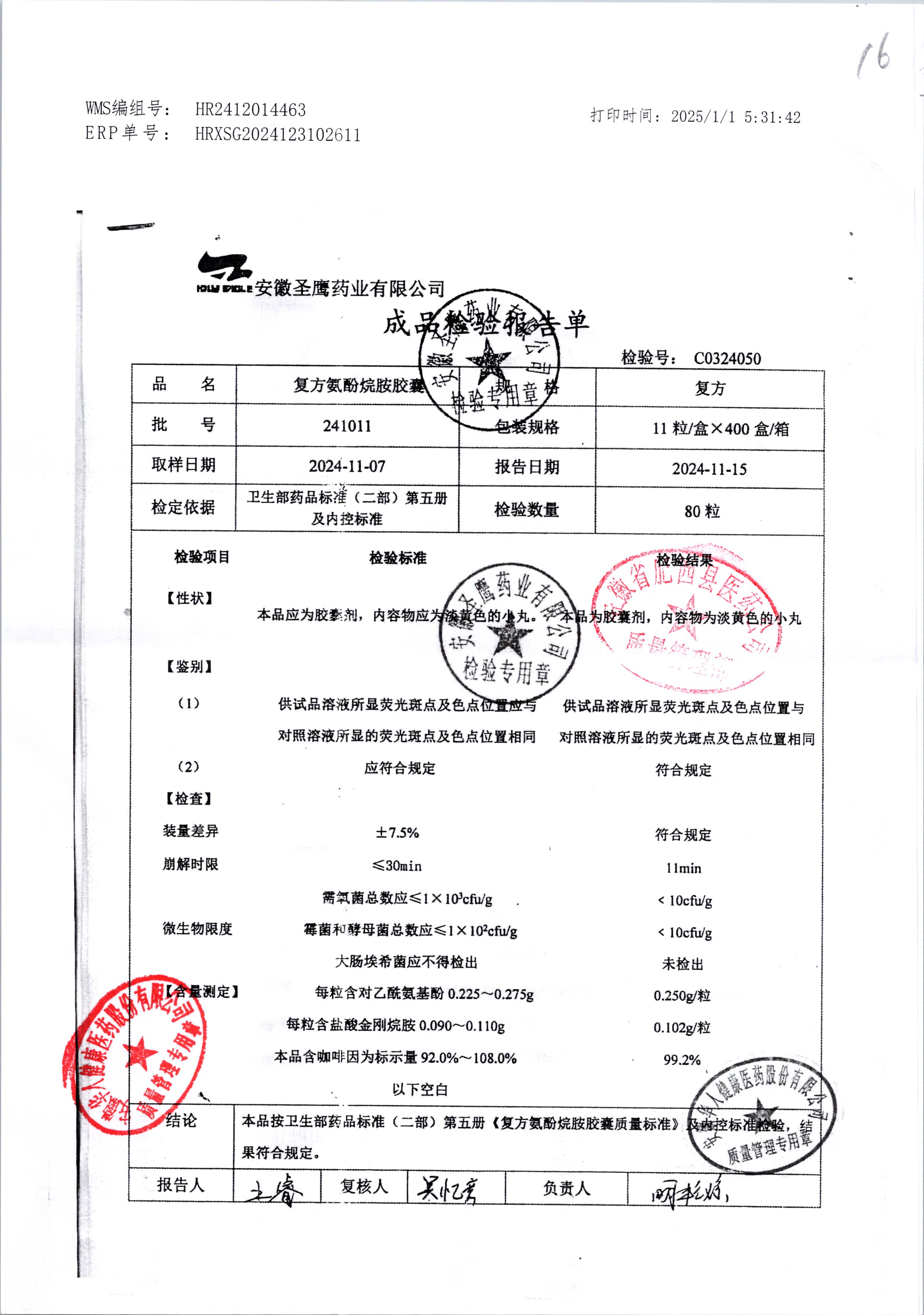 | 復(fù)方氨酚烷胺膠囊 | 11s*1 | 241011/2 | 查看詳情 |