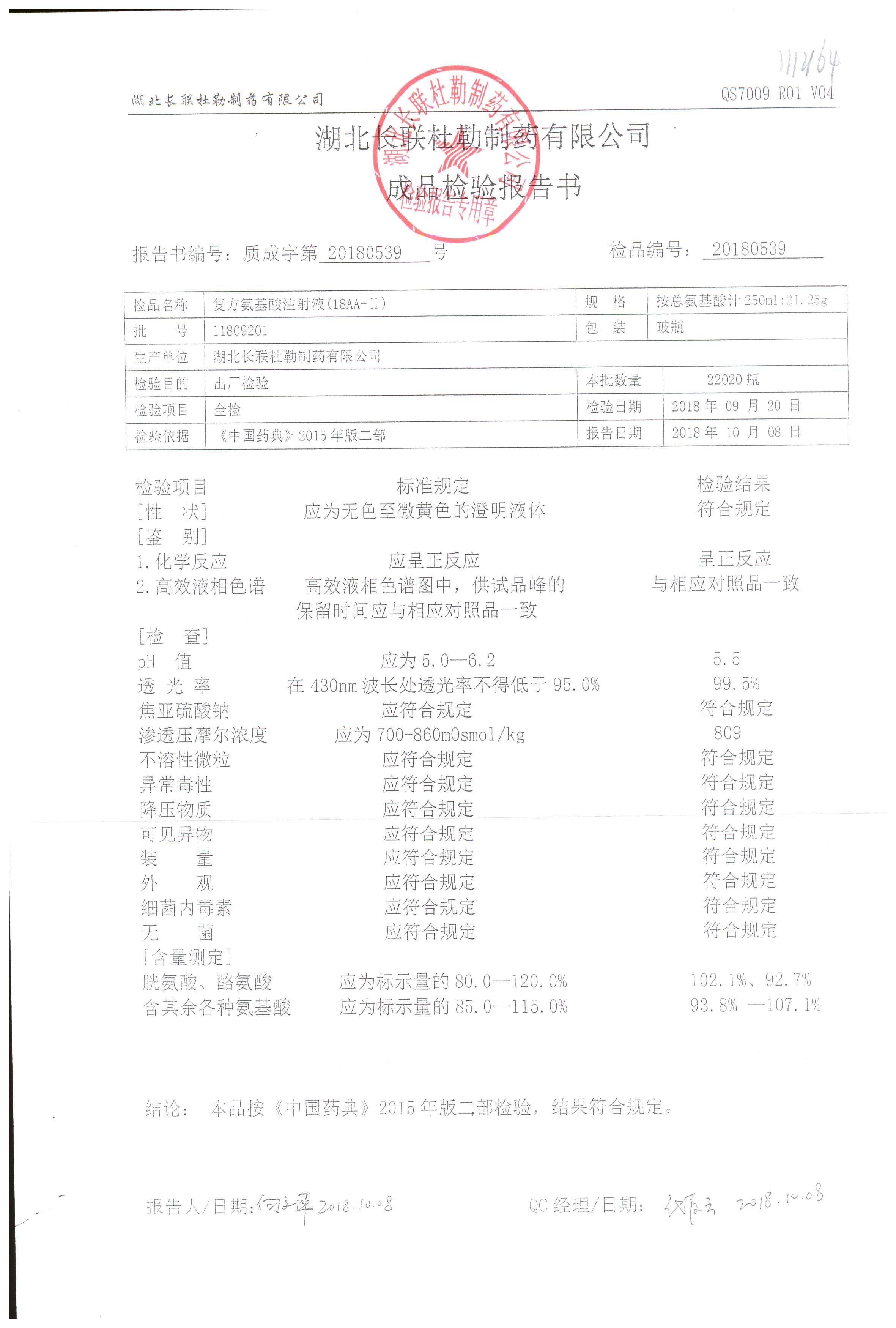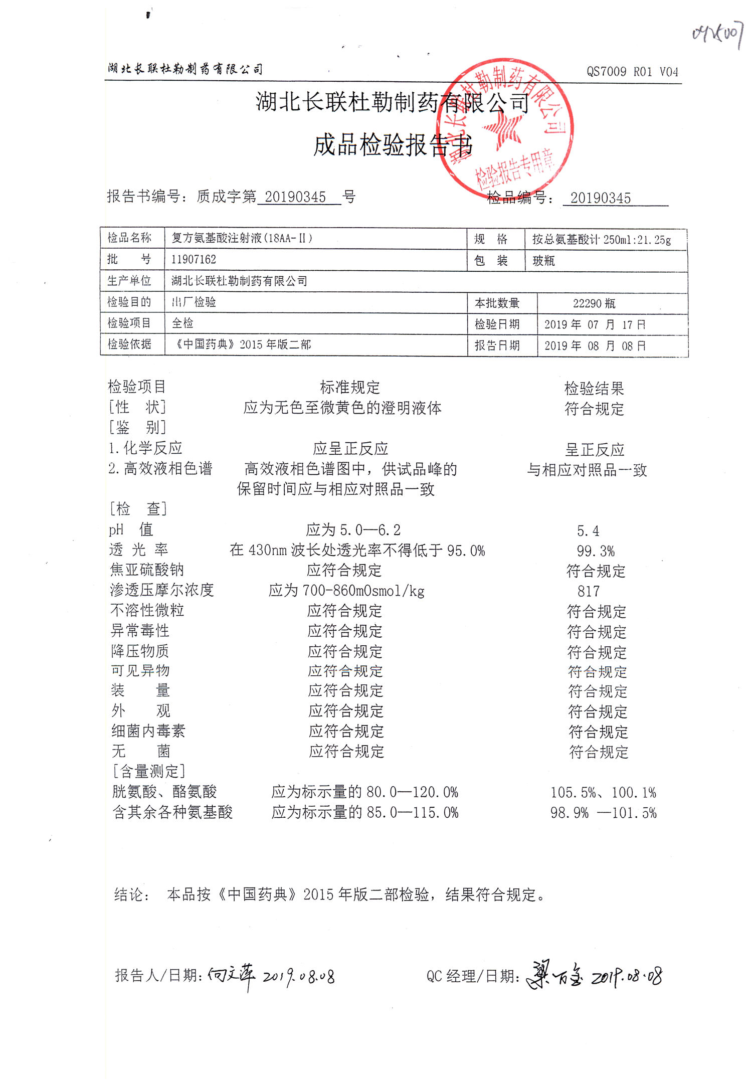 | 復方氨基酸注射液 | 250ml:21.25g | 11801172 | 查看詳情 |