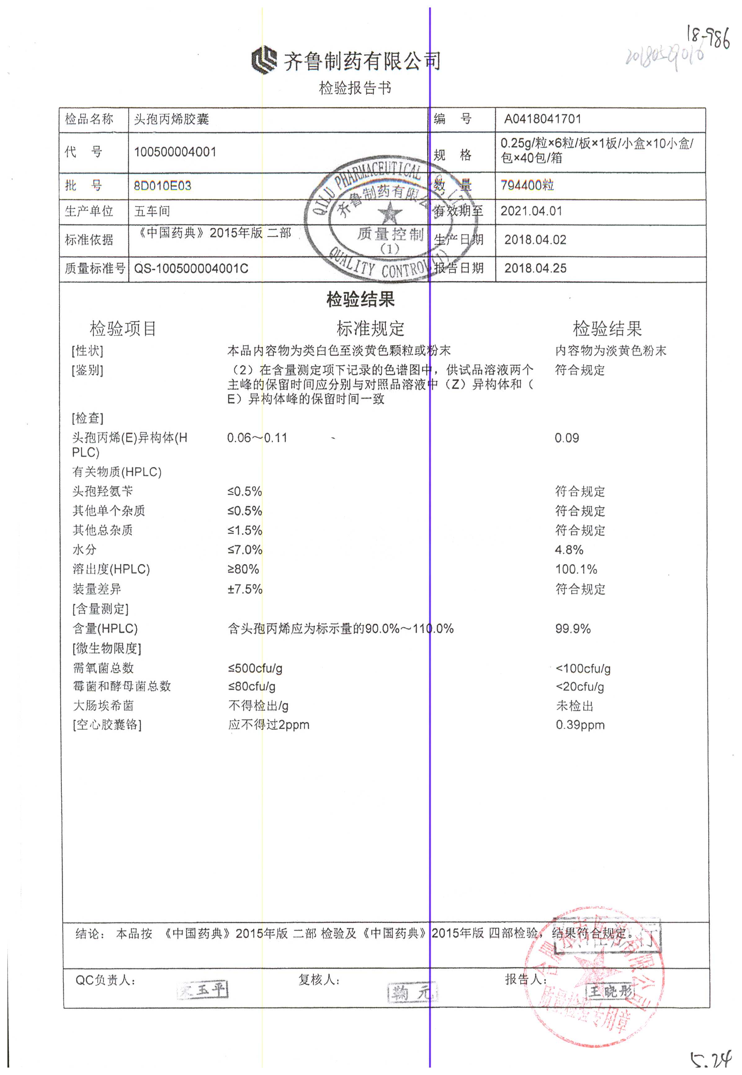 | 頭孢丙烯膠囊 | 0.25g*6s | 8J030E03 | 查看詳情 |