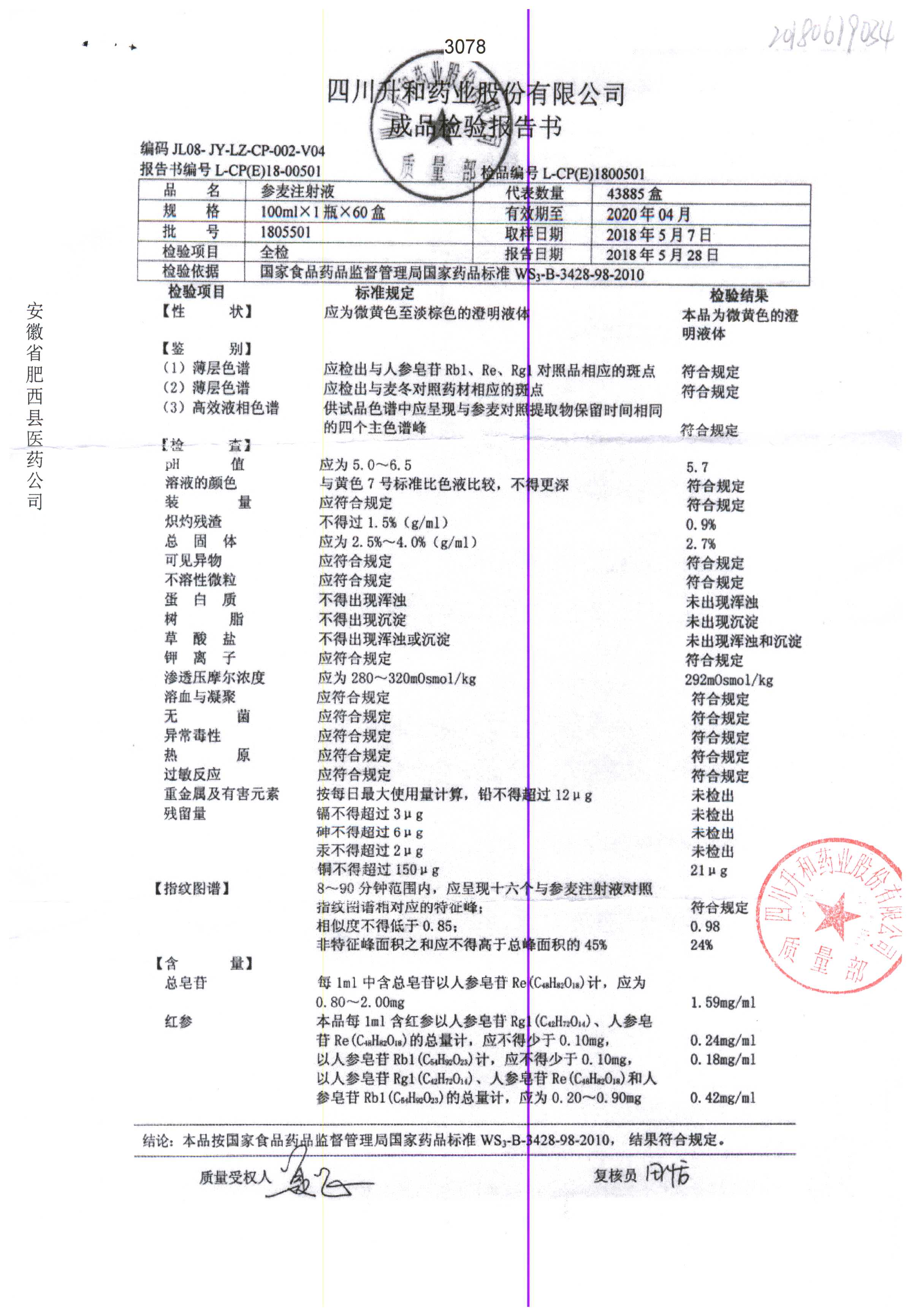 | 參麥注射液 | 100ml*1瓶 | 1803103 | 查看詳情 |