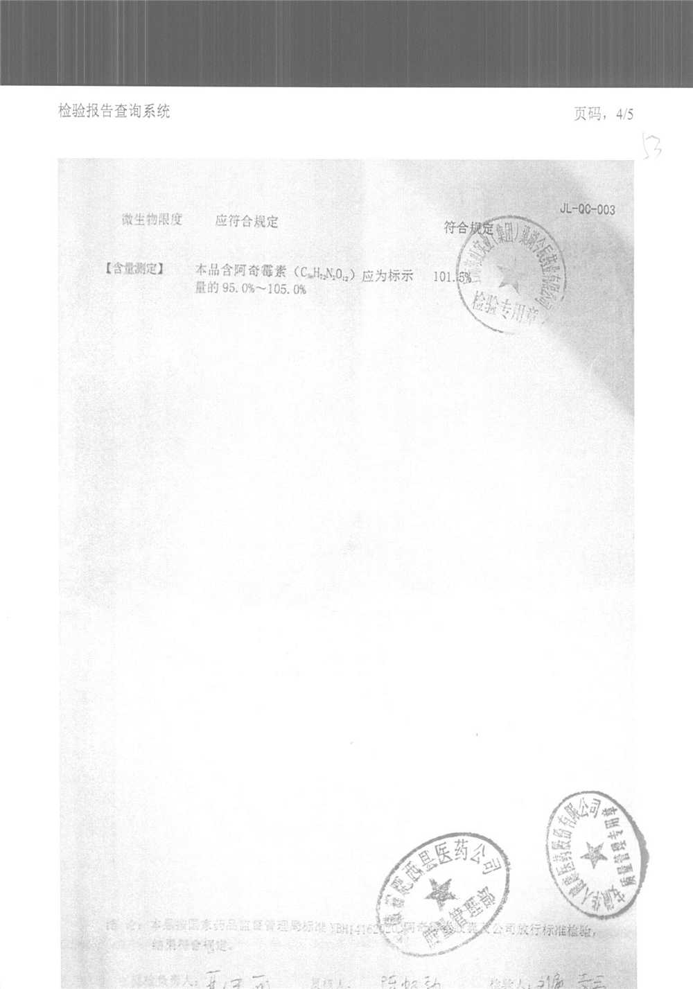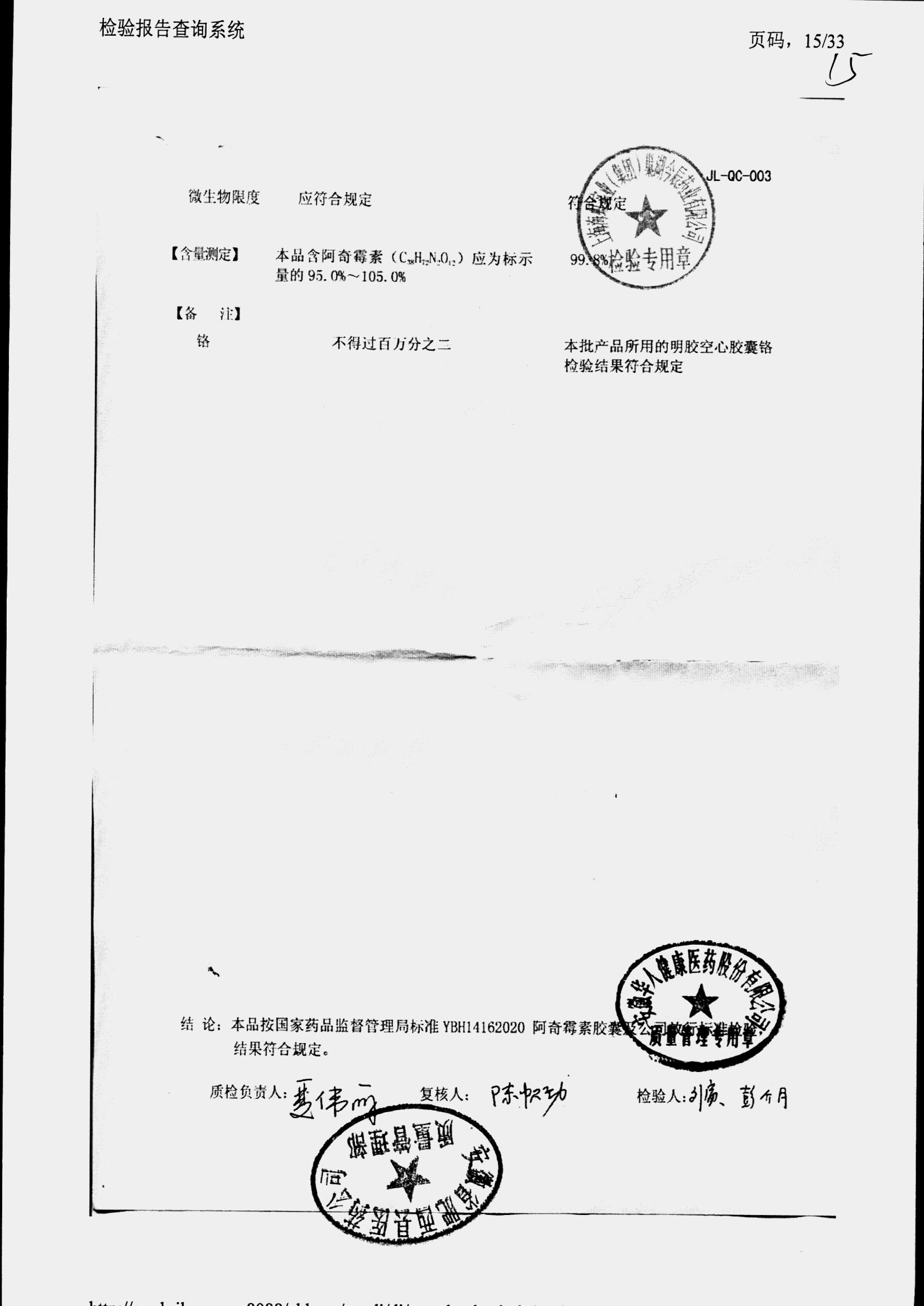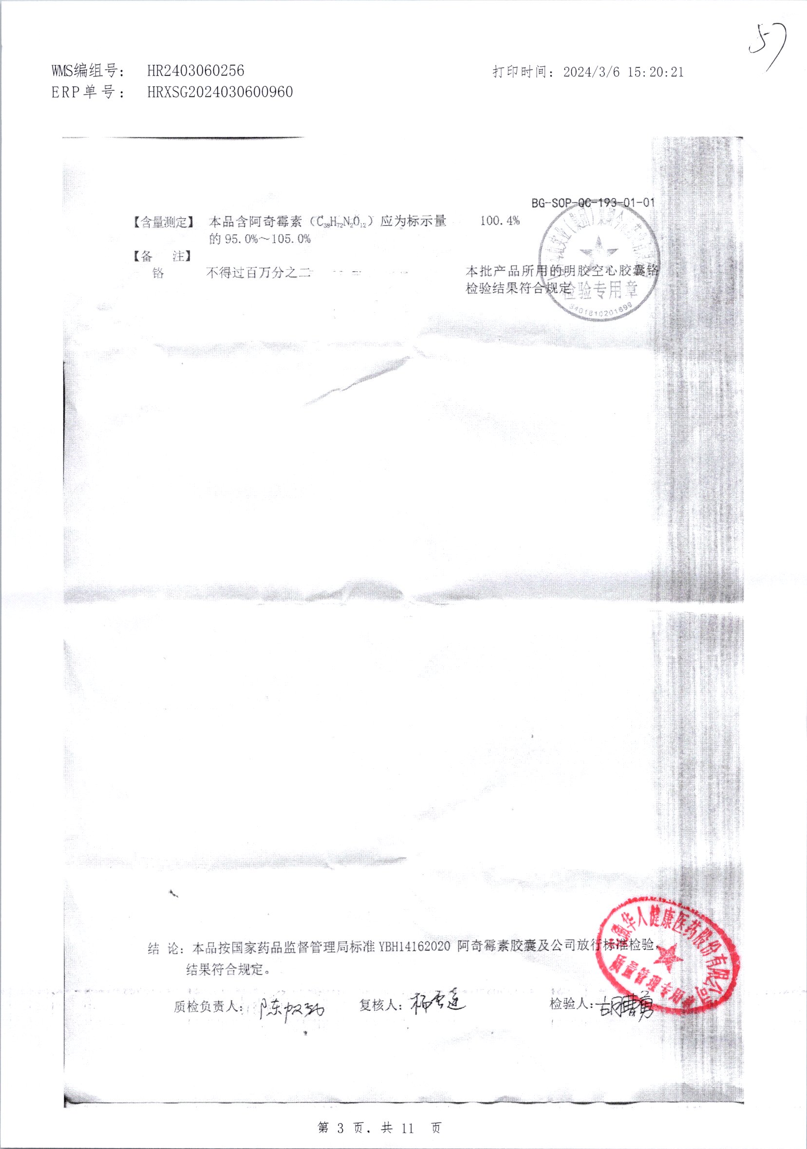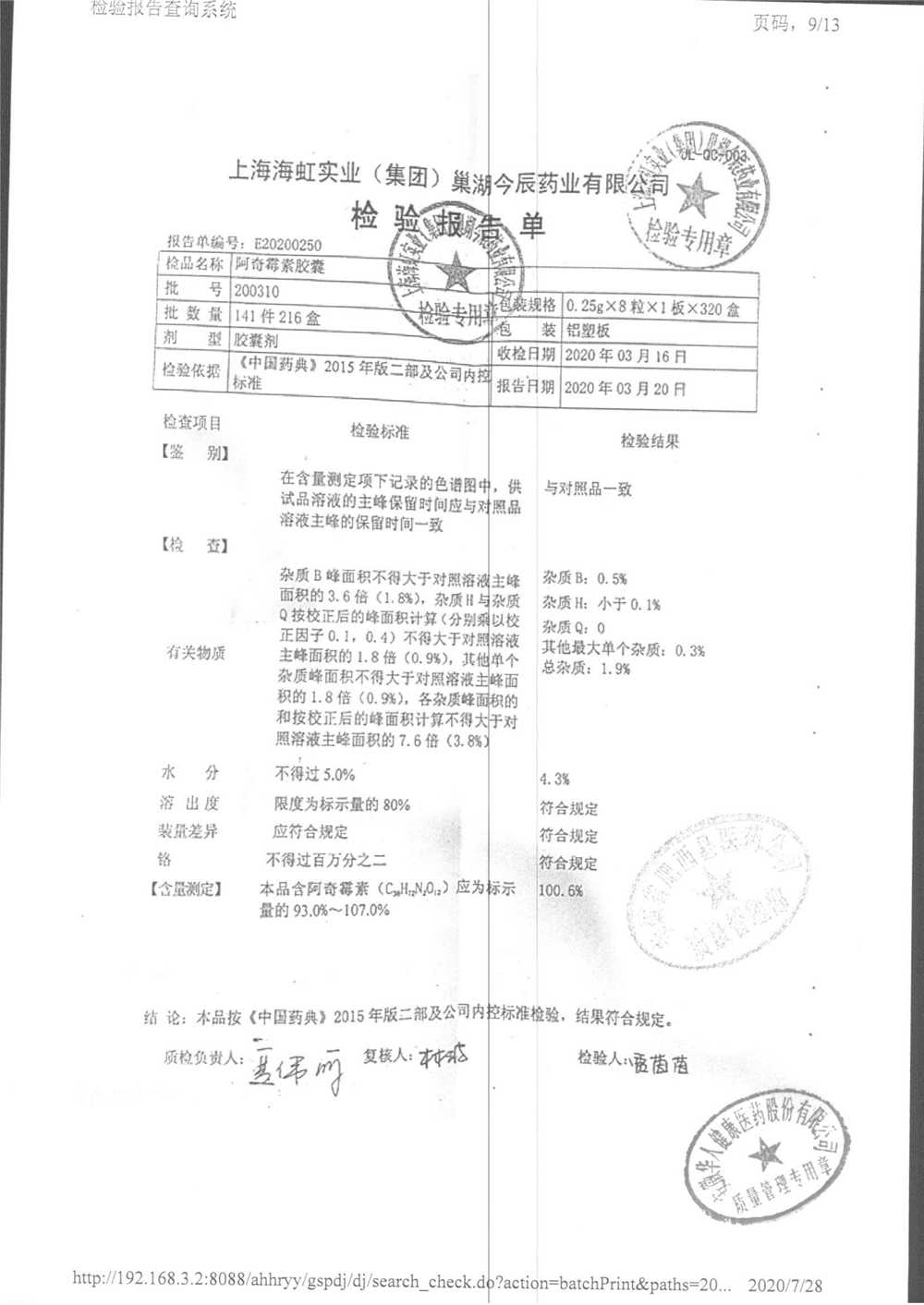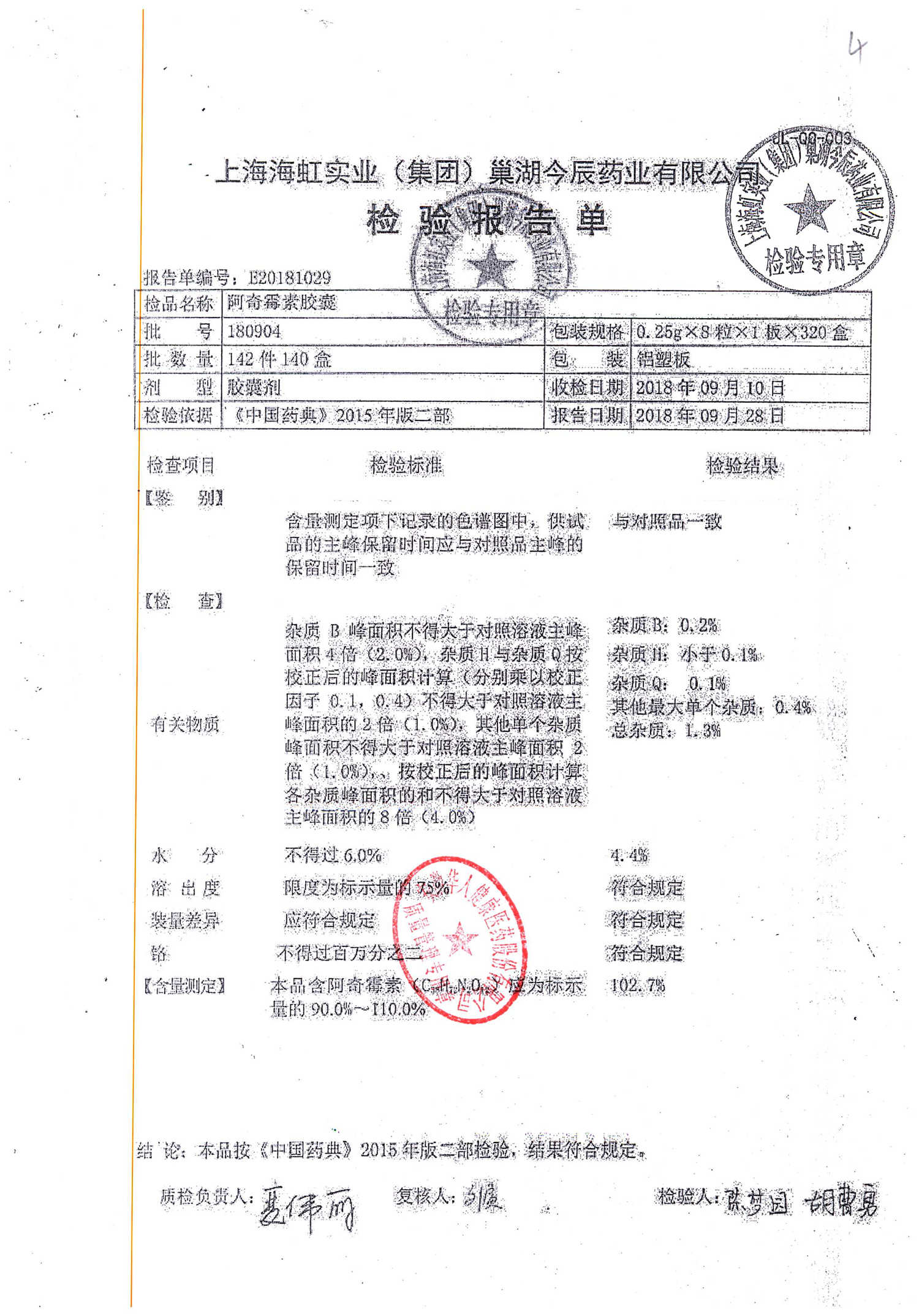 | 阿奇霉素膠囊 | 0.25g*8s | 210303(1/2) | 查看詳情 |