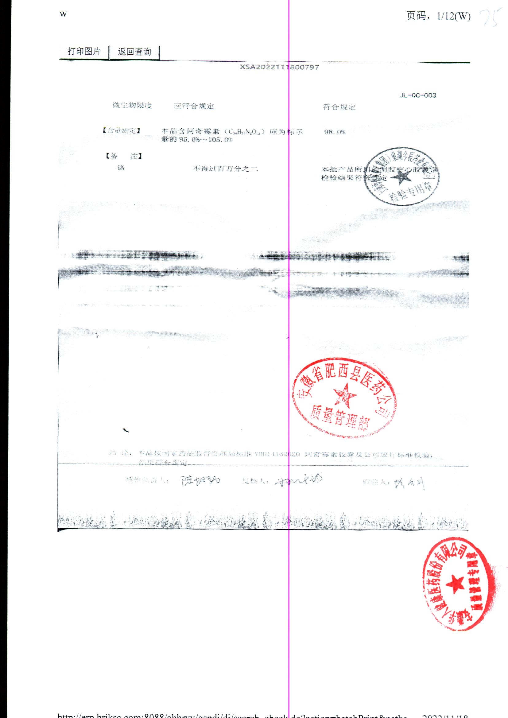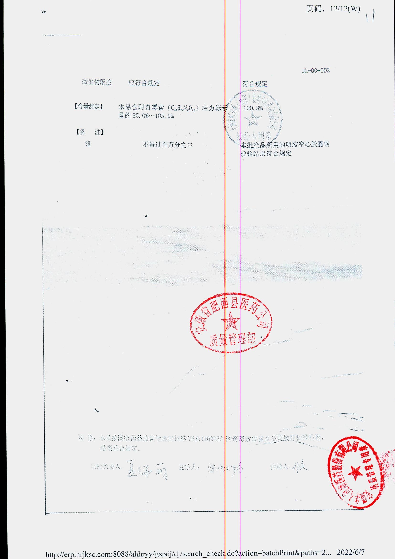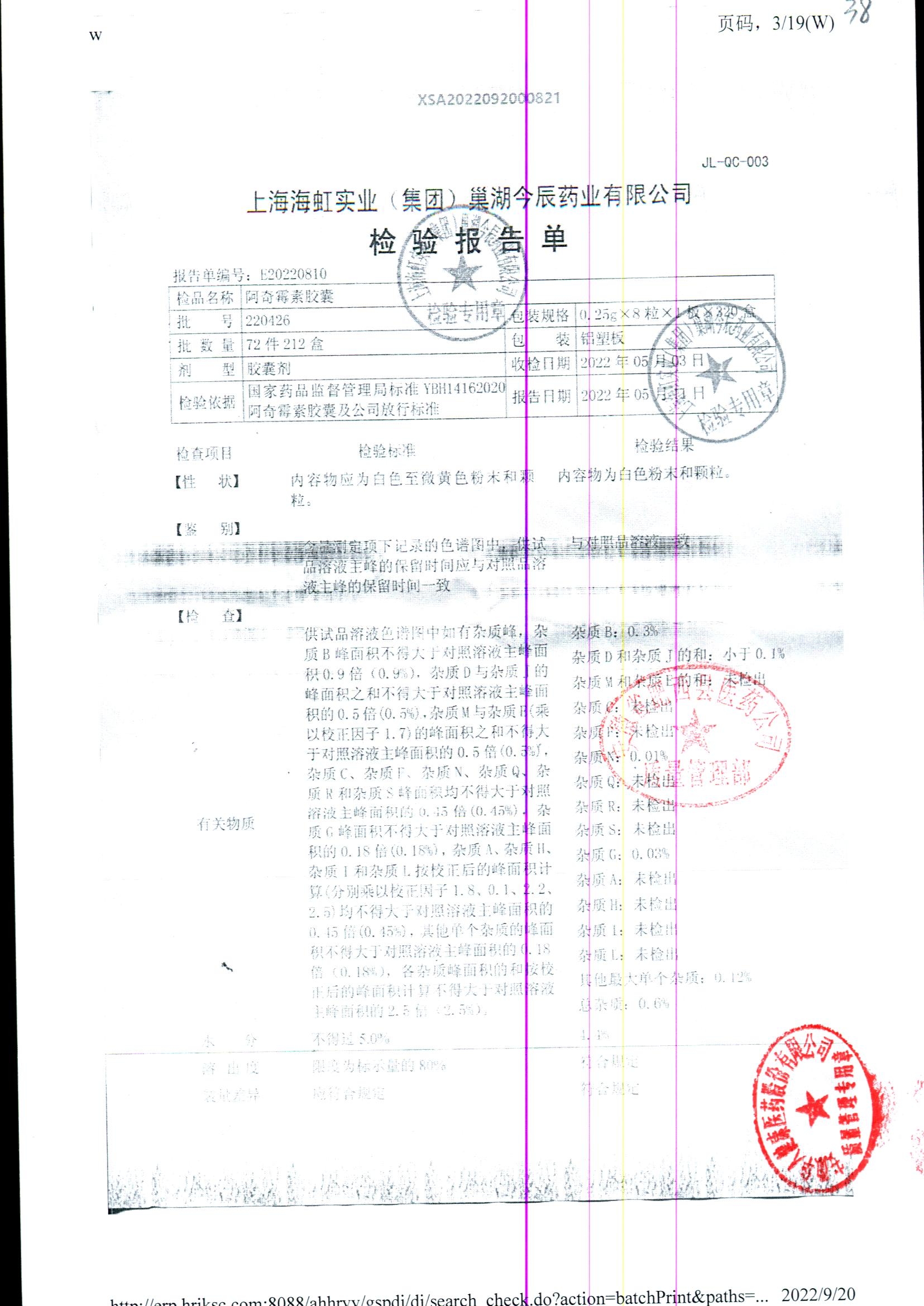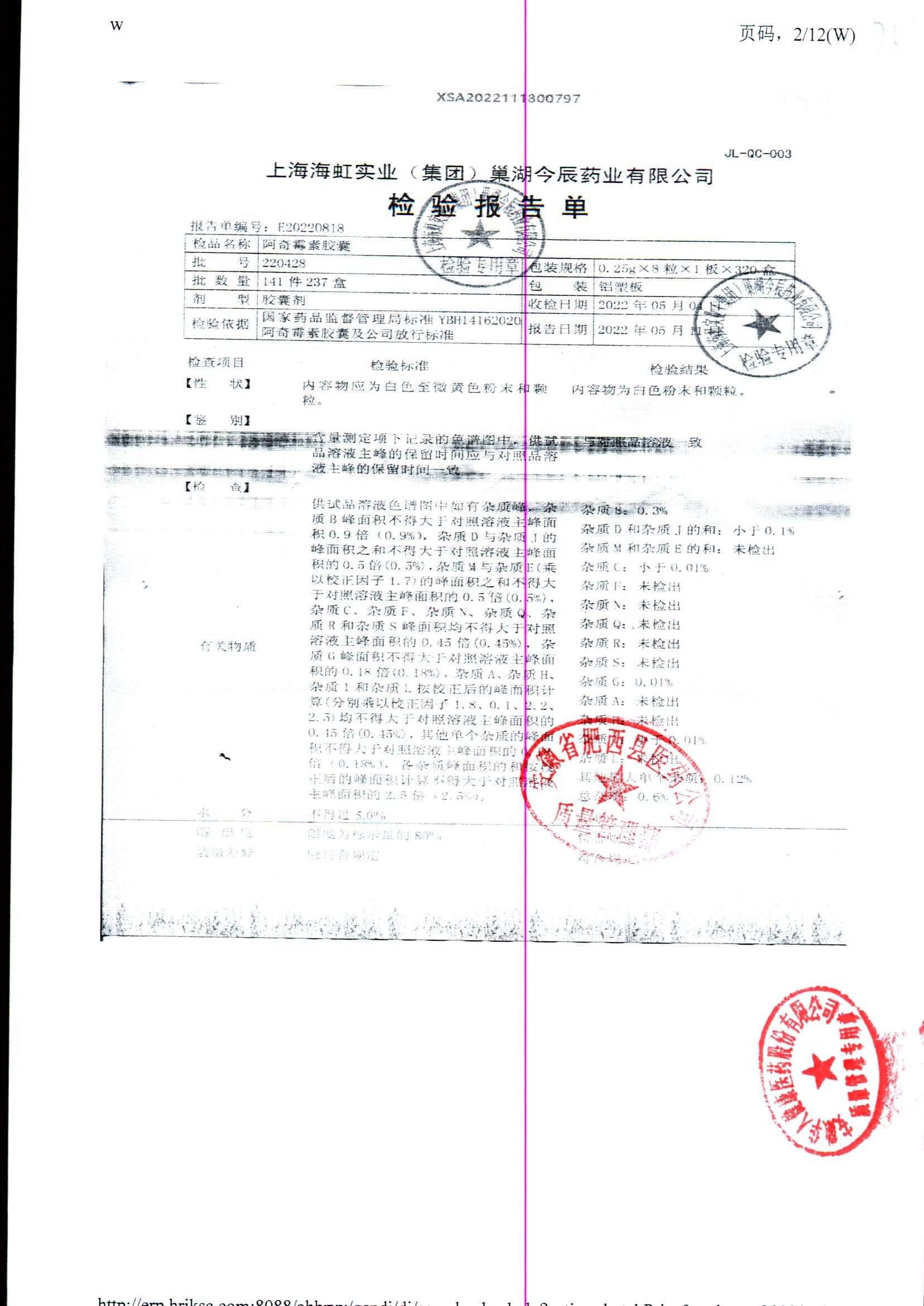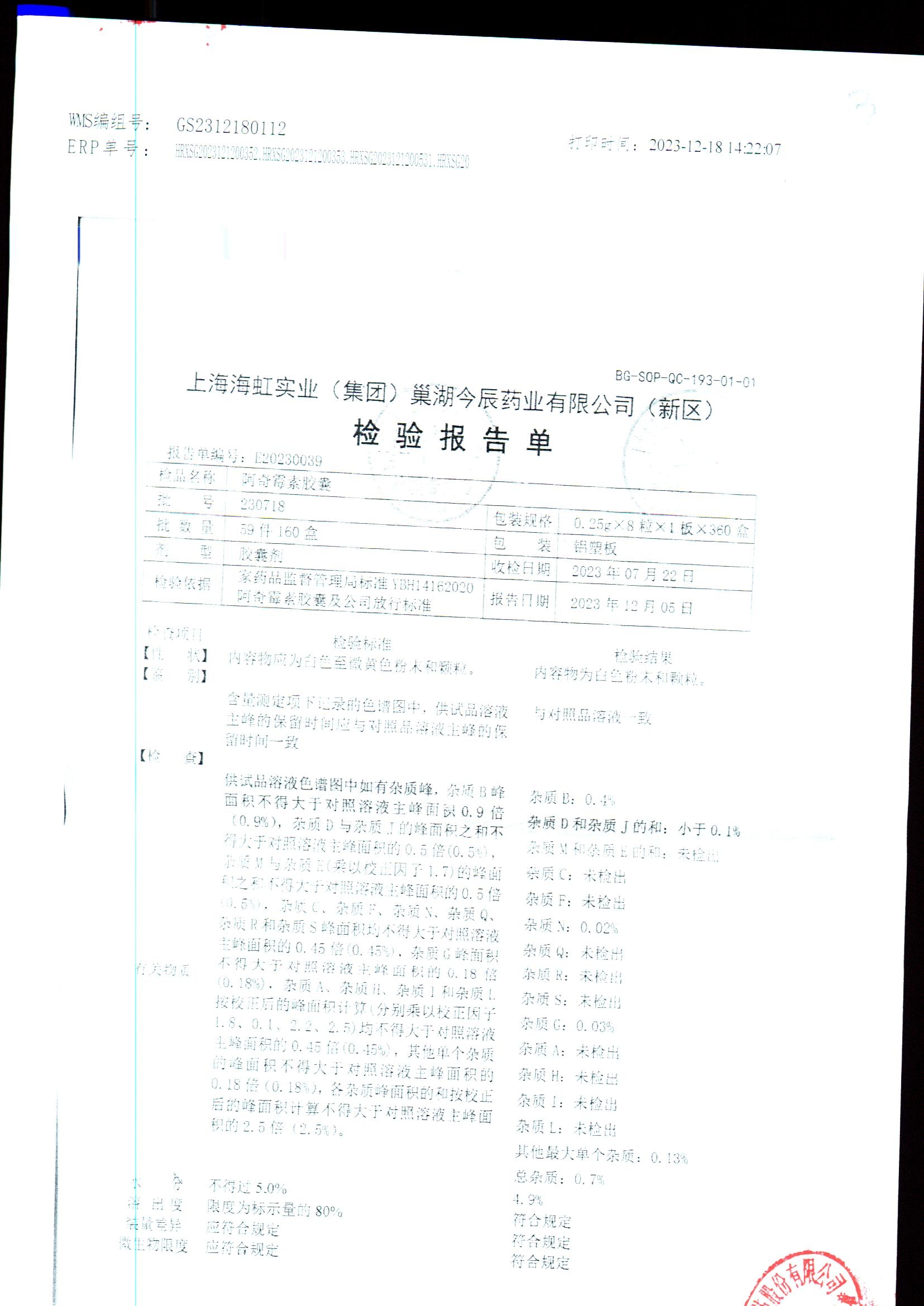 | 阿奇霉素膠囊 | 0.25g*8s | 211122-1 | 查看詳情 |