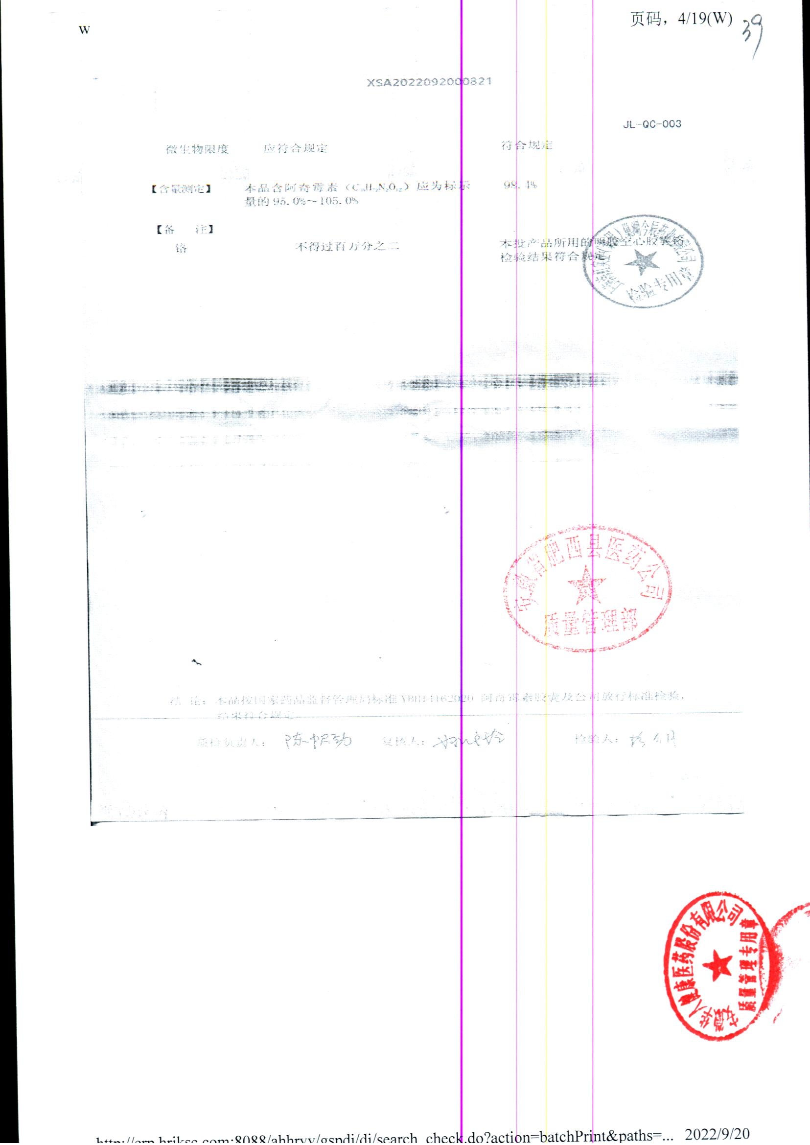 | 名稱 | 規格 | 批號 | 藥檢報告 |